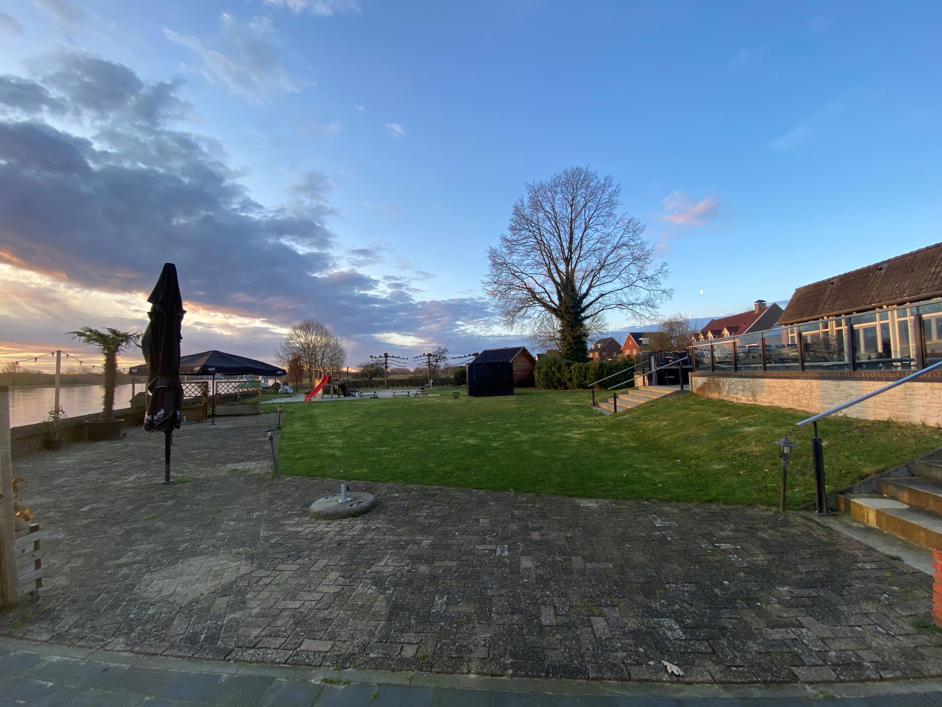 Vanaf het terras zie je de boten voorbij gaan en het veerpont