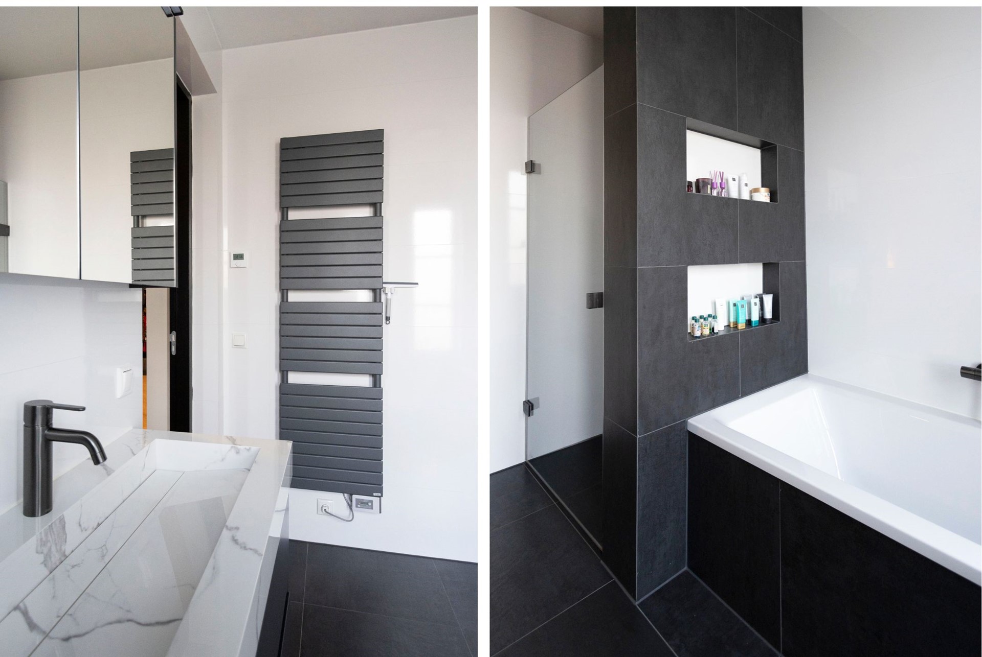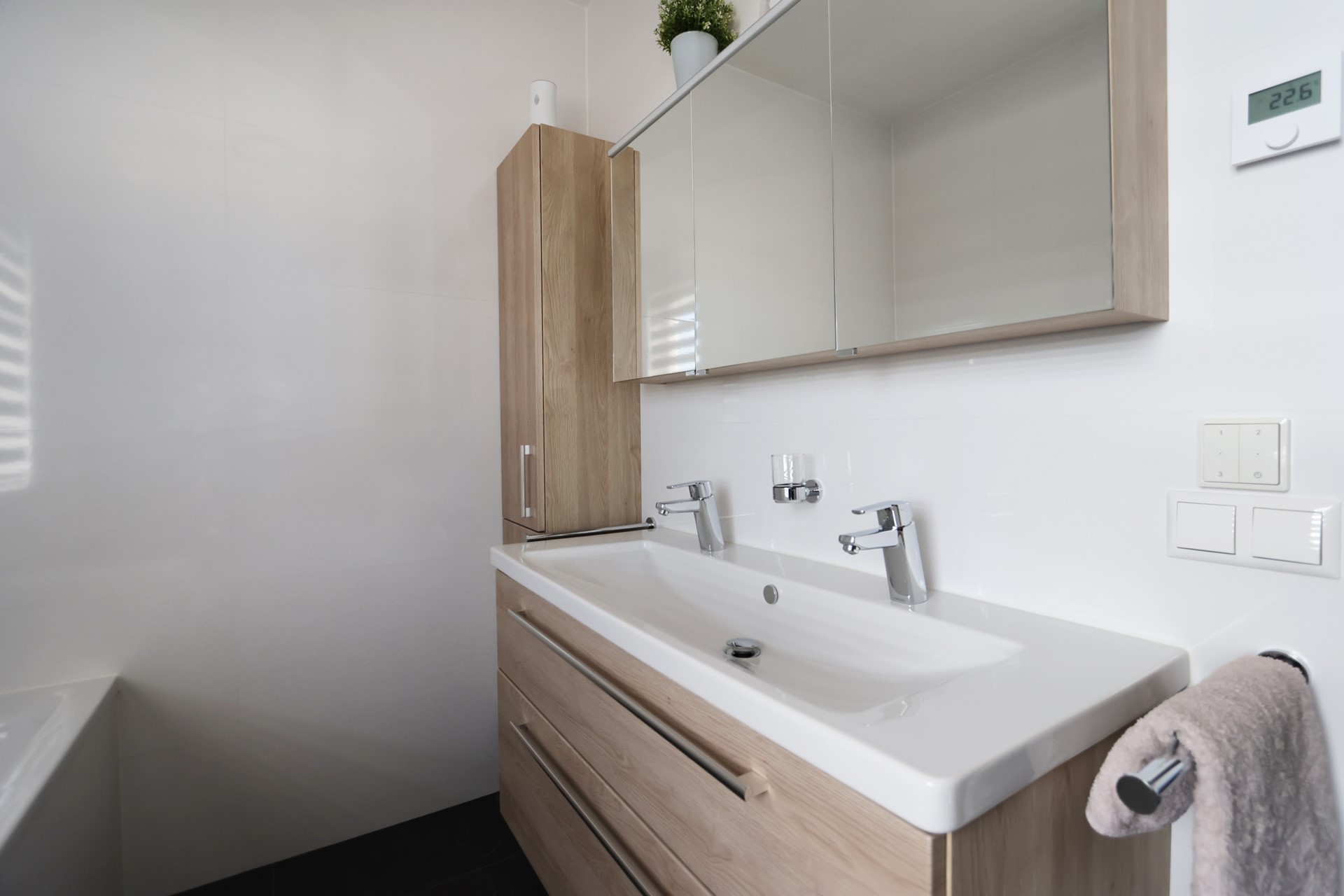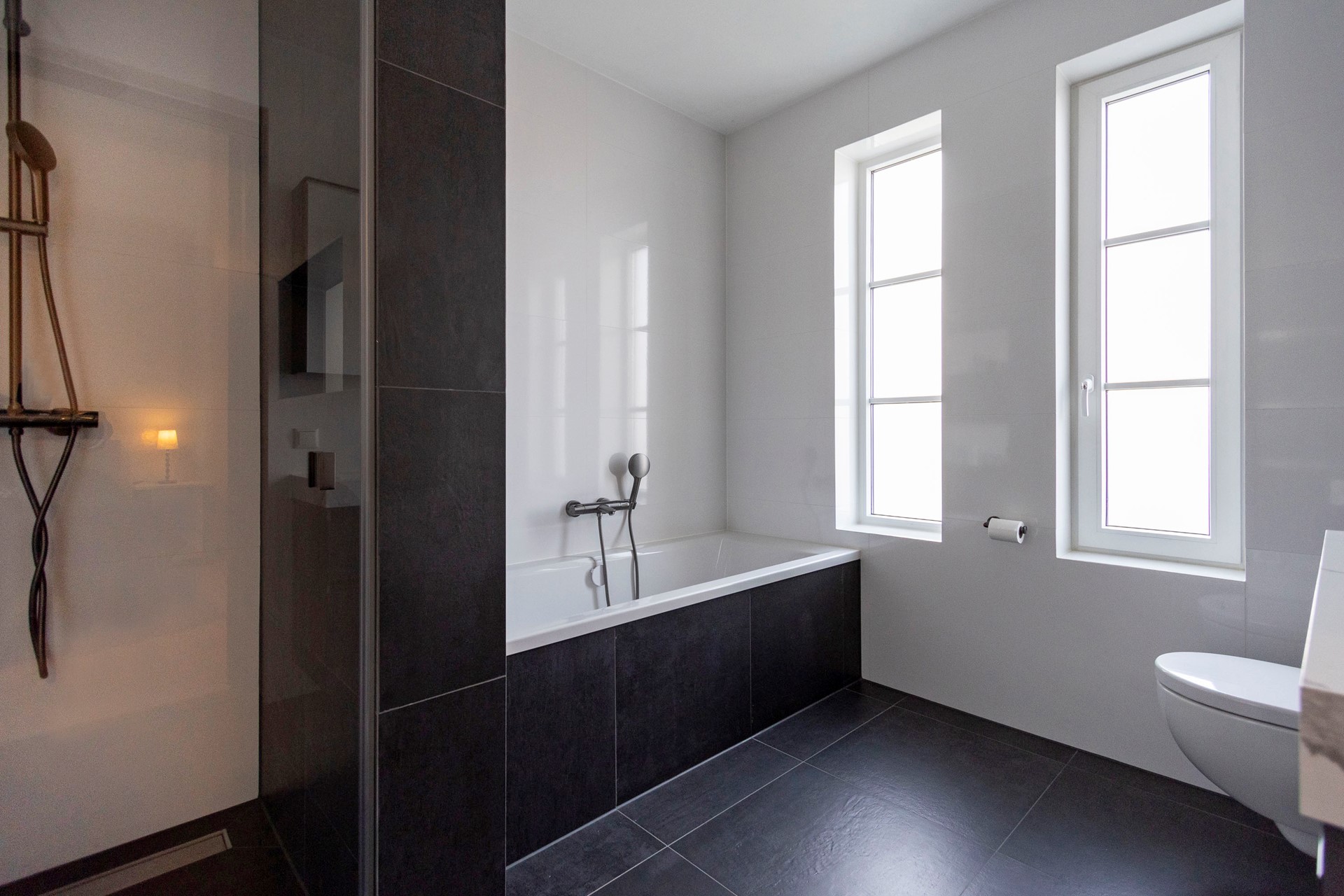 | Badkamervoorzieningen Badkamer 1 | Dubbele wastafel, Inloopdouche, Ligbad, Toilet, Wastafelmeubel |