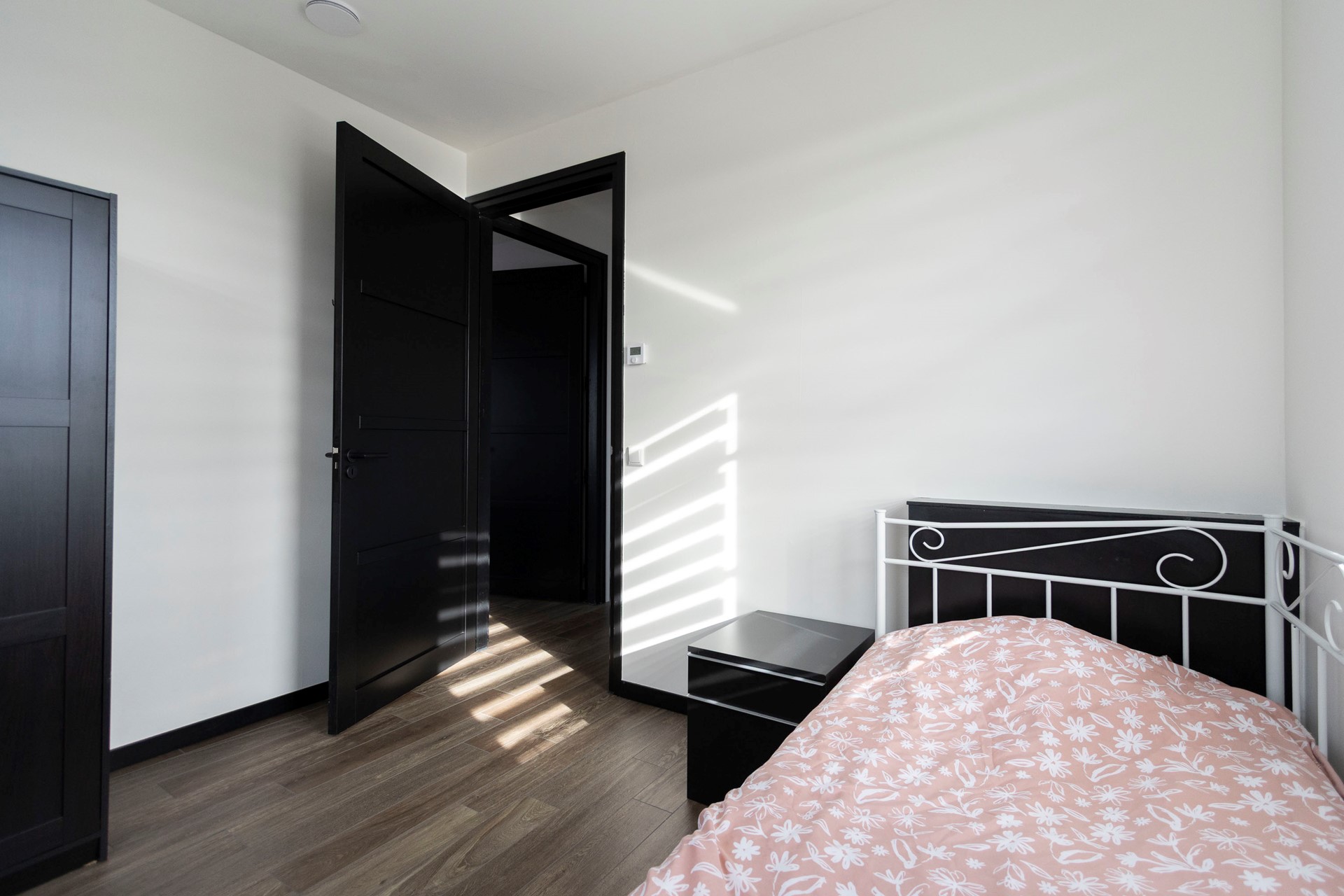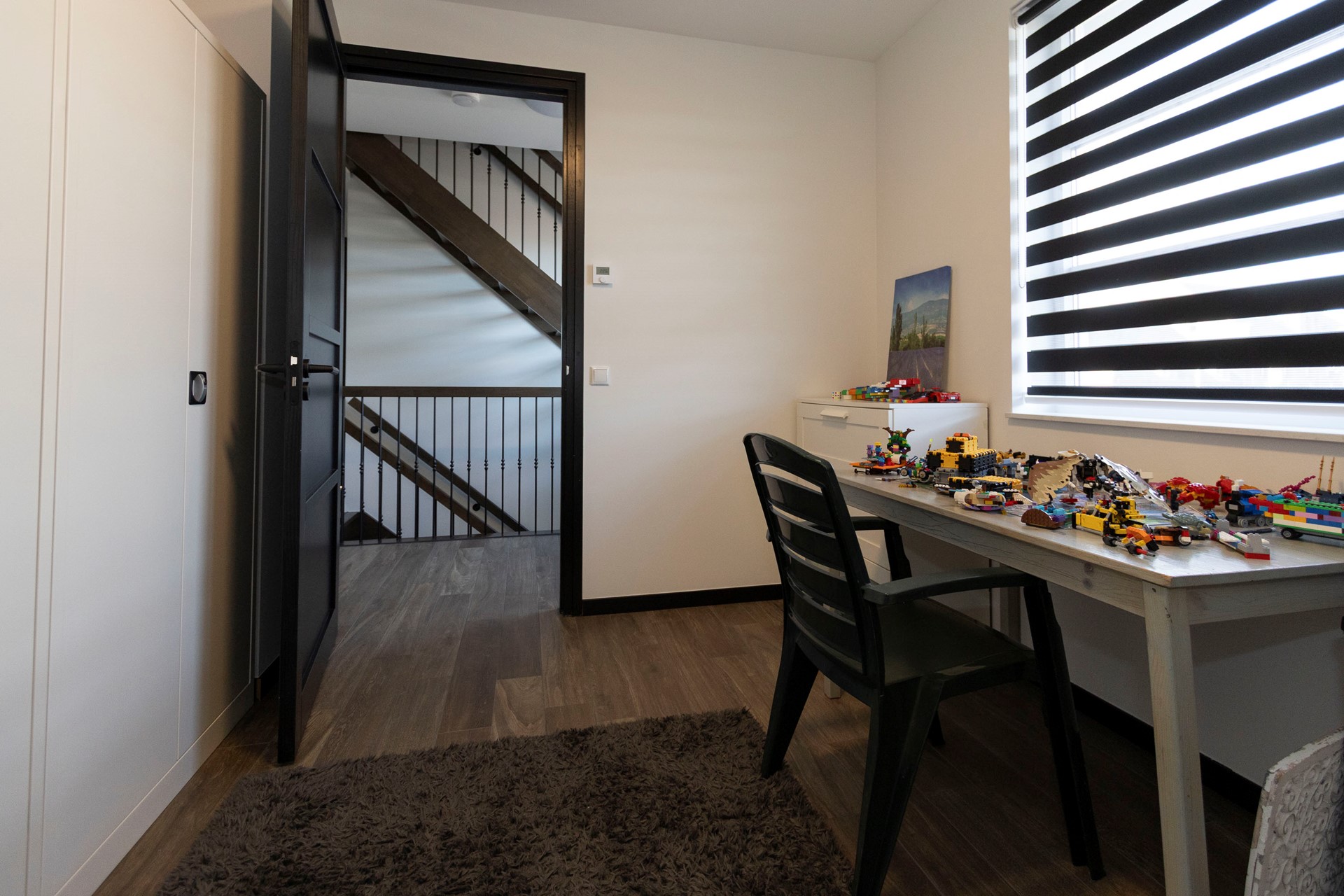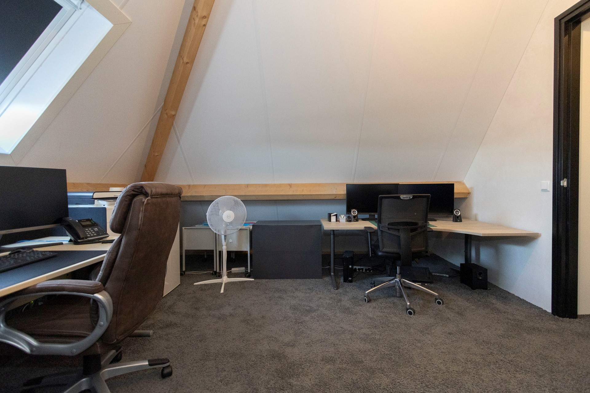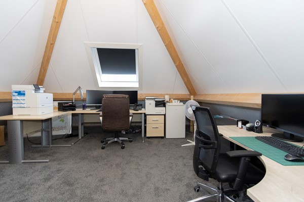 De tweede verdieping biedt nog eens twee volwaardige kamers, momenteel in gebruik als thuiskantoren. In één van deze ruimtes bevindt zich de WTW unit. Dankzij de vaste trap en de nette afwerking voelt ook deze verdieping als volwaardig woonoppervlak.