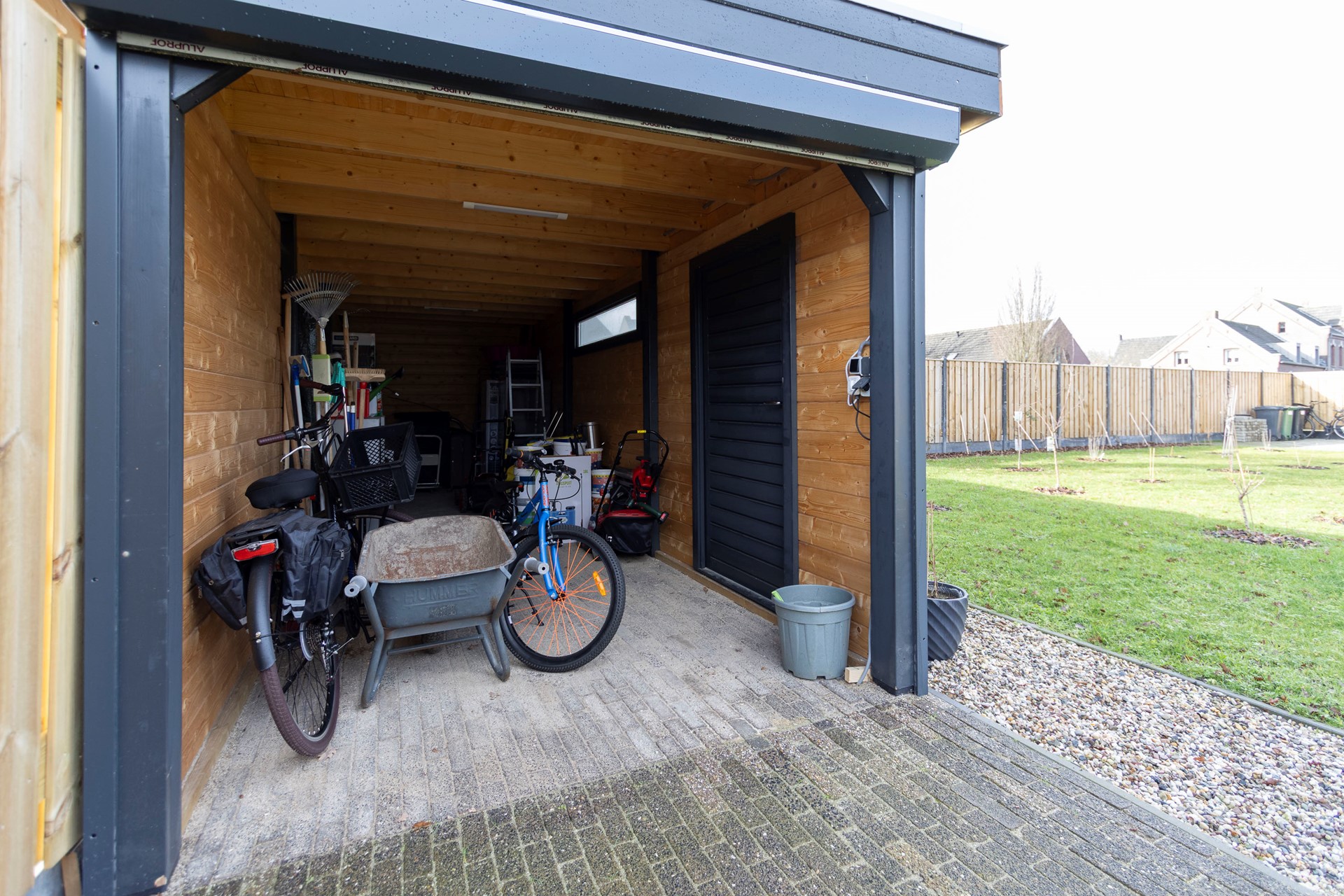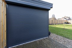 - Grote houten schuur met elektrische rolpoort