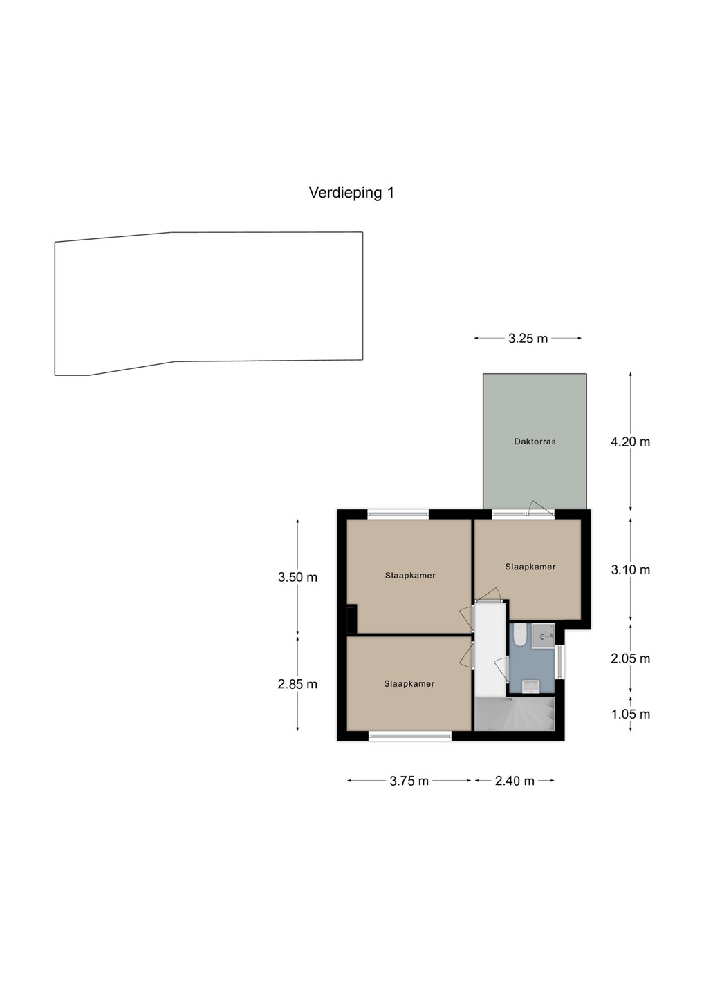 Slaapkamer III met vloerbedekking en toegang tot het dakterras