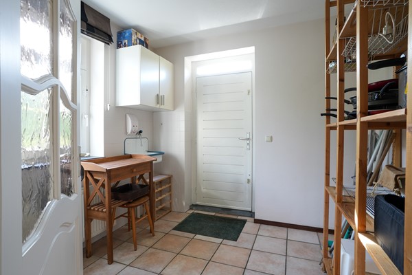 Berging/bijkeuken met witgoedaansluitingen en enkele deur naar de oprit