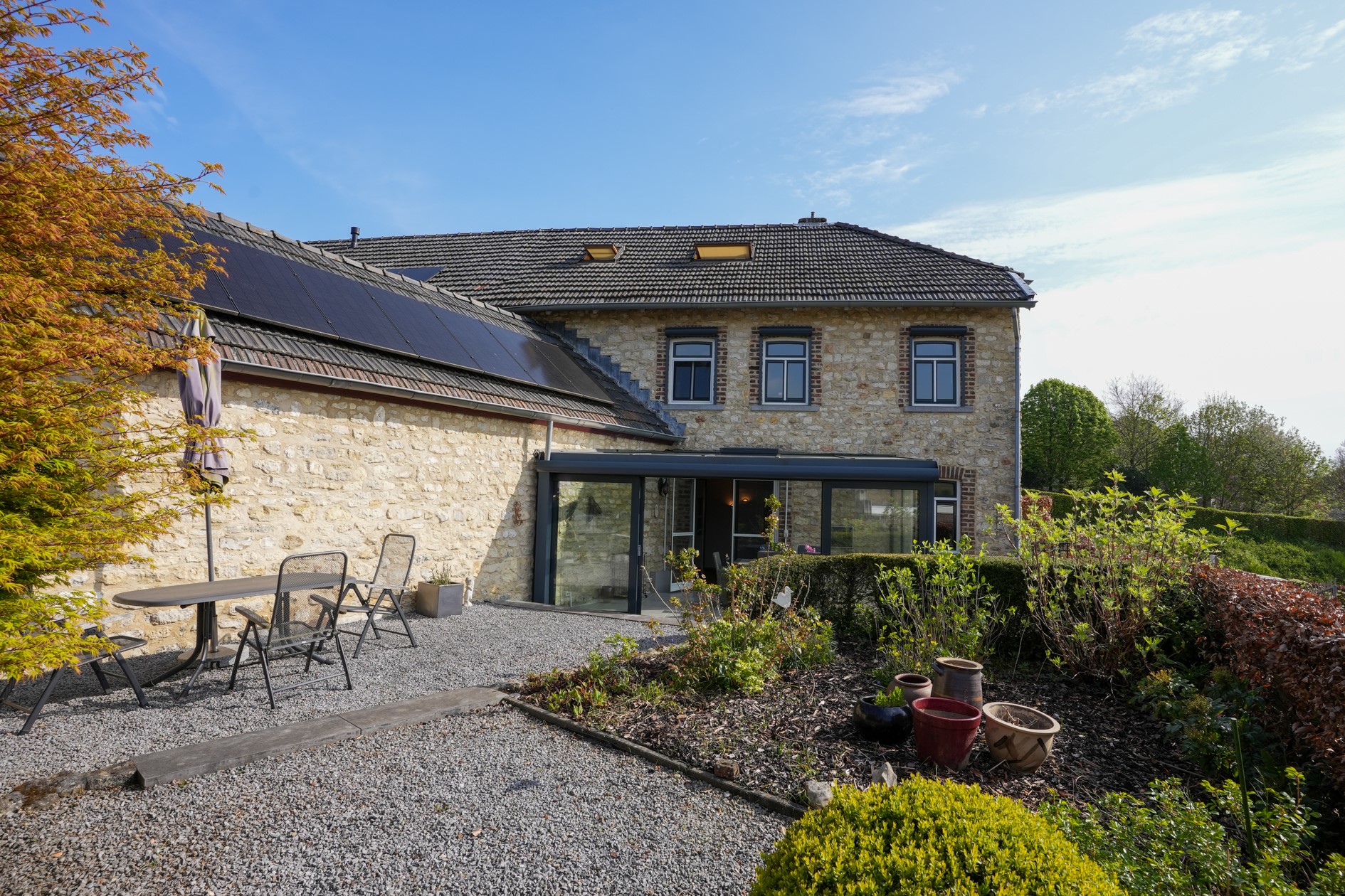 Een karakteristieke halfvrijstaande woning op een prachtige plek aan de voet van de Eyserbosweg, met een vrij uitzicht over het glooiende Heuvellandschap en een verrassend ruim woonoppervlak. Deze woning, opgetrokken in streekeigen Kunradersteen en oorspronkelijk historisch van aard, is in 1997 volledig herbouwd en daarmee klaar voor de toekomst. Je woont hier rustig, met weinig autoverkeer en direct nabij natuur en het Eyserbos, terwijl je vanuit de tuin iedere dag opnieuw geniet van een panoramisch uitzicht over Eys en de omliggende heuvels waar zelfs het Miljoenenlijntje doorheen rijdt. De woning biedt met circa 175 m² woonoppervlak volop leefruimte en comfort. De begane grond kenmerkt zich door royale leefruimtes met een prettige indeling. De serre aan de achterzijde vormt een mooie overgang tussen binnen en buiten en maakt dat je vrijwel het hele jaar door van de tuin kunt genieten. Het geheel voelt ruim en solide aan, met voldoende mogelijkheden om het naar eigen smaak in te richten. Op de verdiepingen bevinden zich maar liefst vier grote slaapkamers, waardoor het huis uitermate geschikt is voor gezinnen of voor wie extra werk- of hobbyruimte zoekt. Daarnaast zijn er praktische ruimtes zoals een berging en een ruime zolder aanwezig, ook is er een eigen parkeerplaats. De tuin is één van de grote pluspunten van dit object. Gelegen op het zuidwesten profiteer je hier van een uitstekende zonligging en een vrij uitzicht dat ieder seizoen weer anders is. Er is voldoende ruimte voor meerdere zitplekken, zodat je altijd een fijne plek vindt in de zon of juist in de schaduw. De ligging aan de Eyserbosweg is uniek: een rustige woonplek met een iconisch karakter voor wielerliefhebbers, midden in het Heuvelland en toch centraal gelegen ten opzichte van omliggende dorpen en steden. Hier woon je letterlijk aan de rand van de natuur, met alle vrijheid en rust die daarbij hoort.