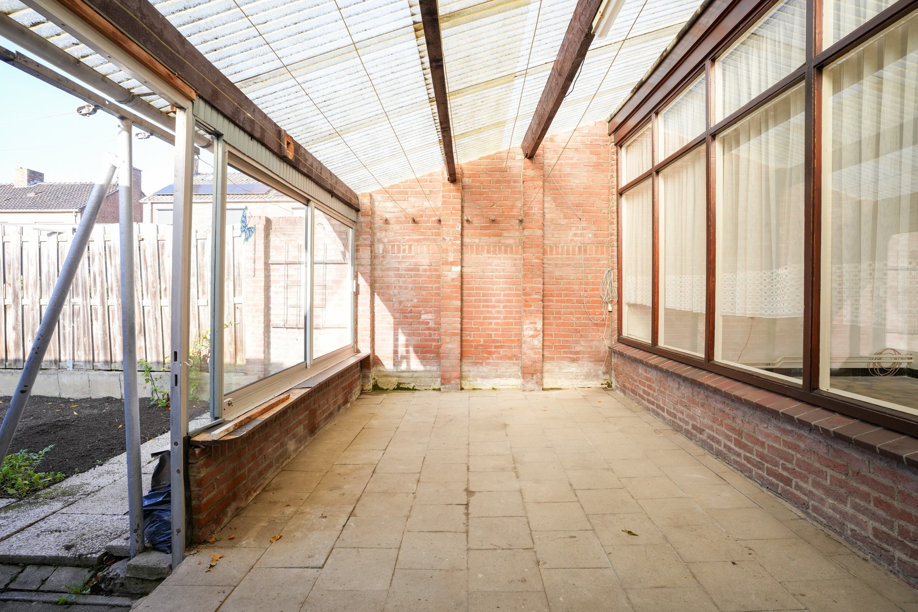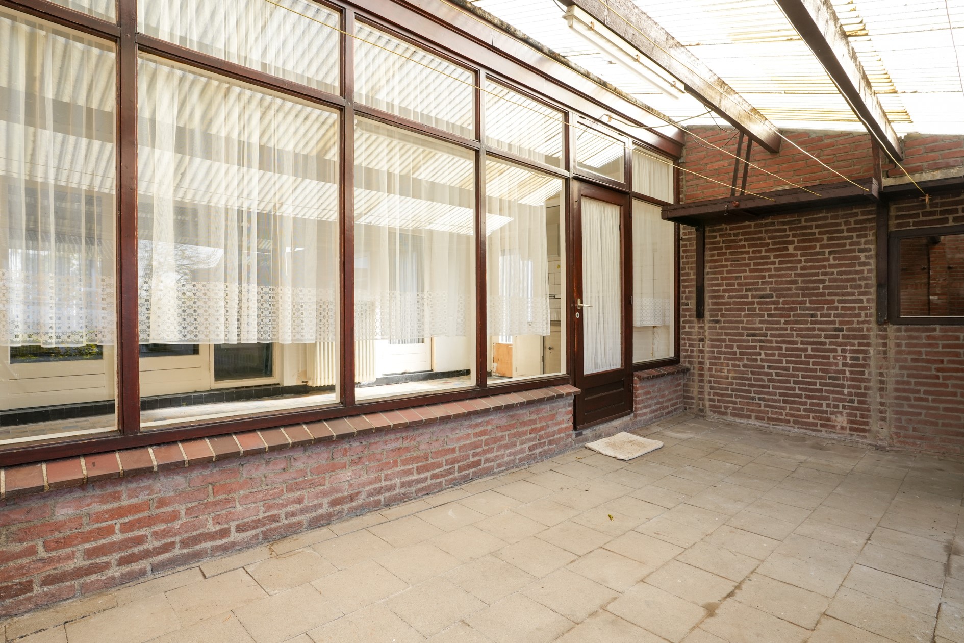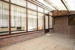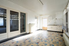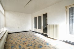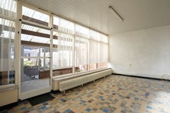 Serre voorzien van tegelvloer, aanrecht en enkele deur naar de oprit