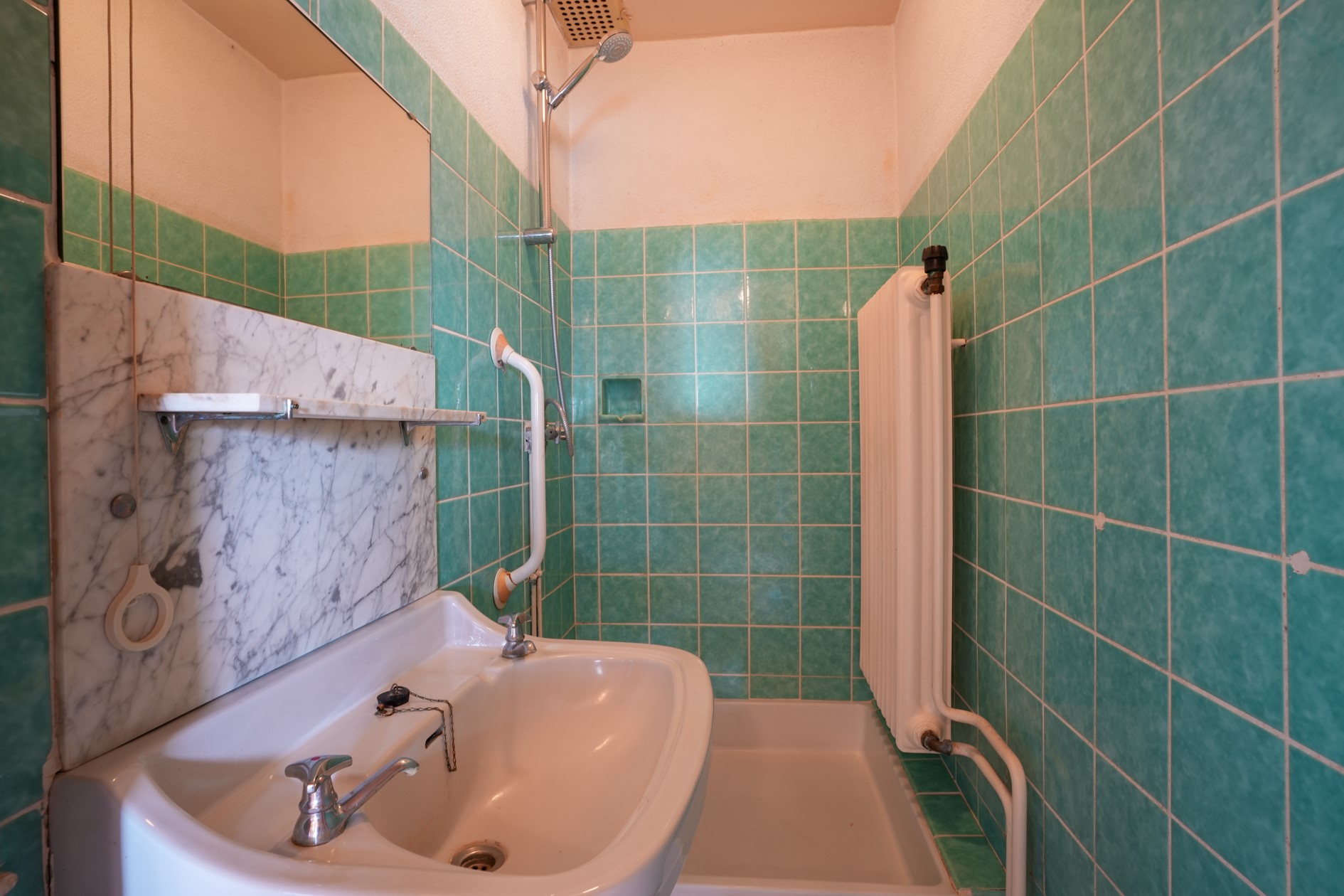 Badkamer voorzien van douche en wastafel