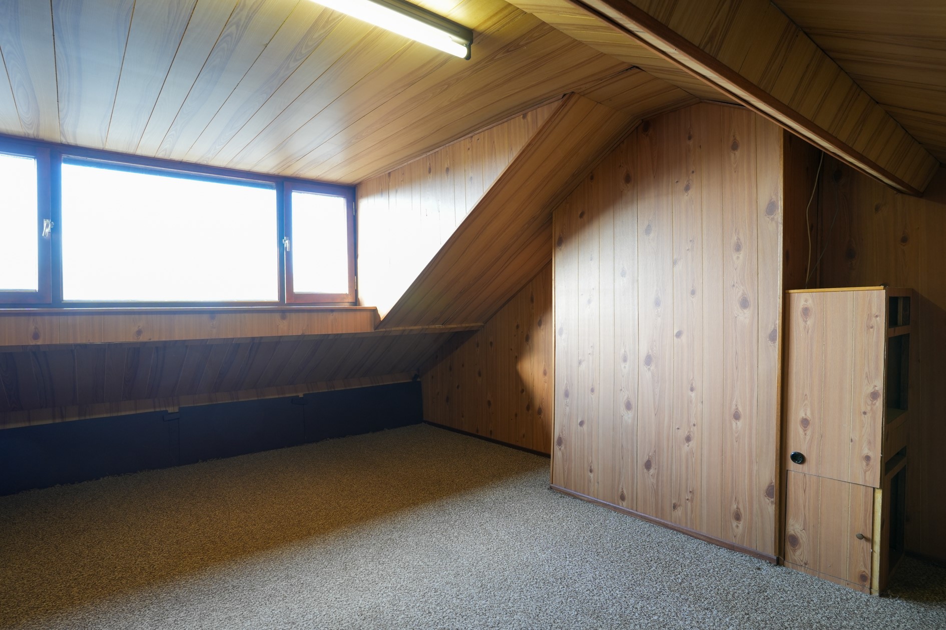 Via steile vaste trap bereikbare zolderverdieping voorzien van vloerbedekking
