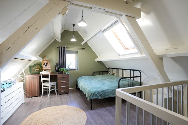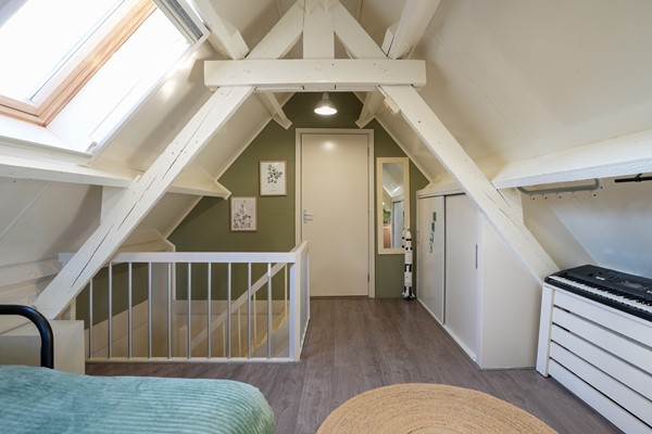 Slaapkamer IV met laminaatvloer, dakraam en bergkast