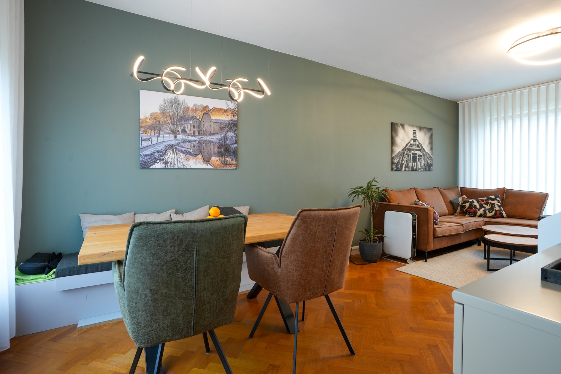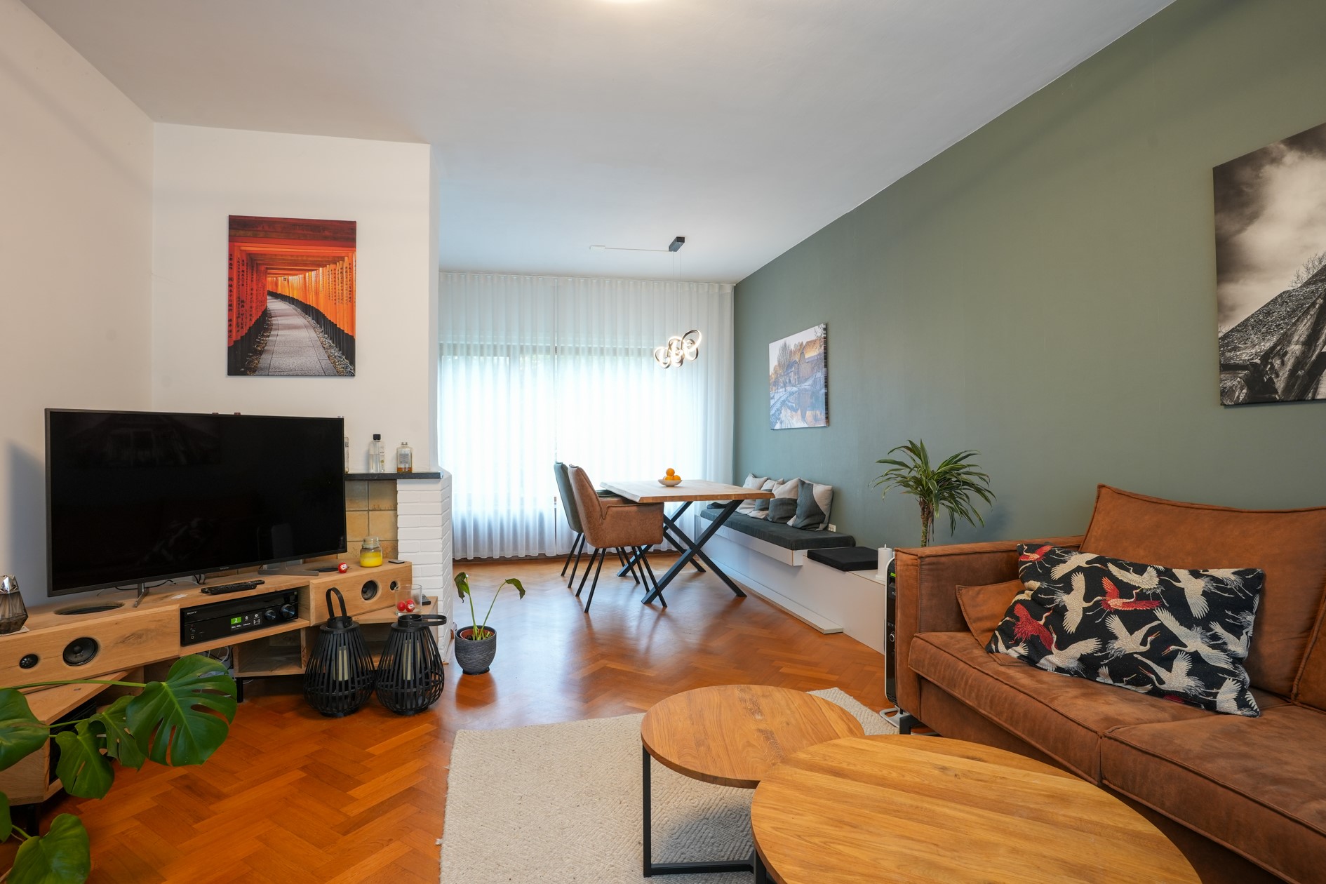 Woonkamer voorzien van visgraat parketvloer