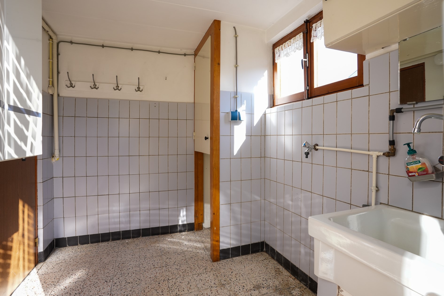 Bijkeuken voorzien van gootsteen, witgoedaansluiting, CV installatie en enkele deur naar de tuin