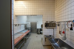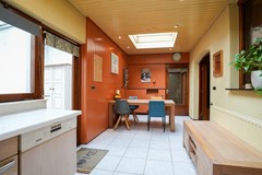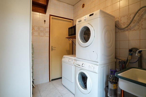 Bijkeuken met tegelvloer en witgoedaansluiting