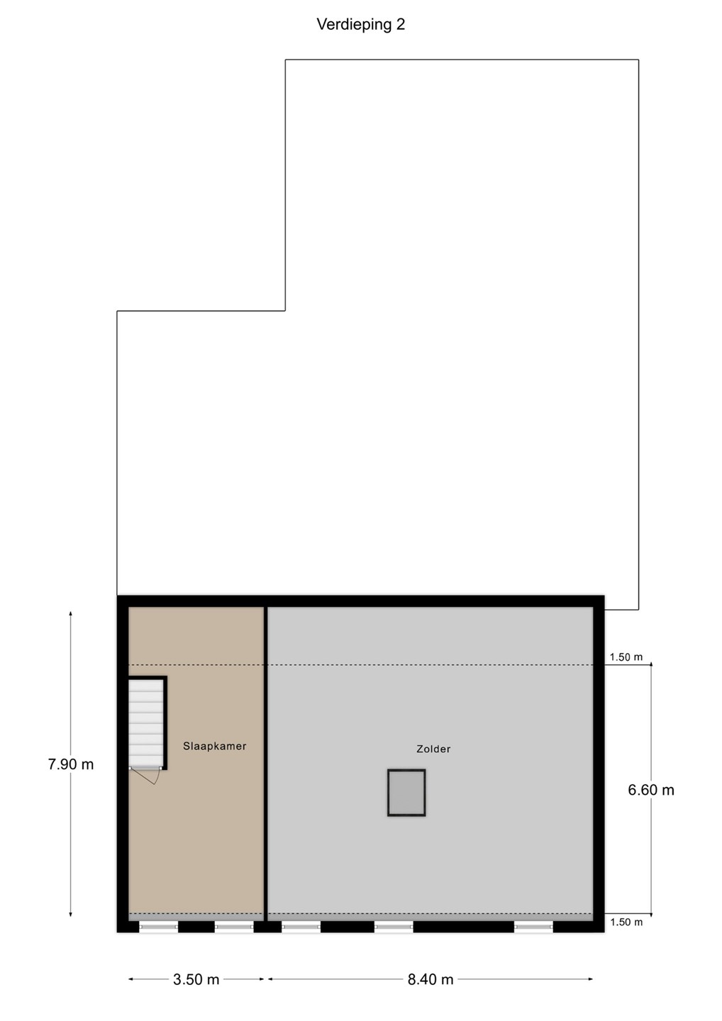 Via vaste trap bereikbare slaapkamer V met laminaatvloer