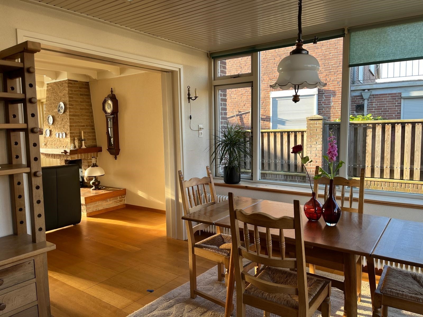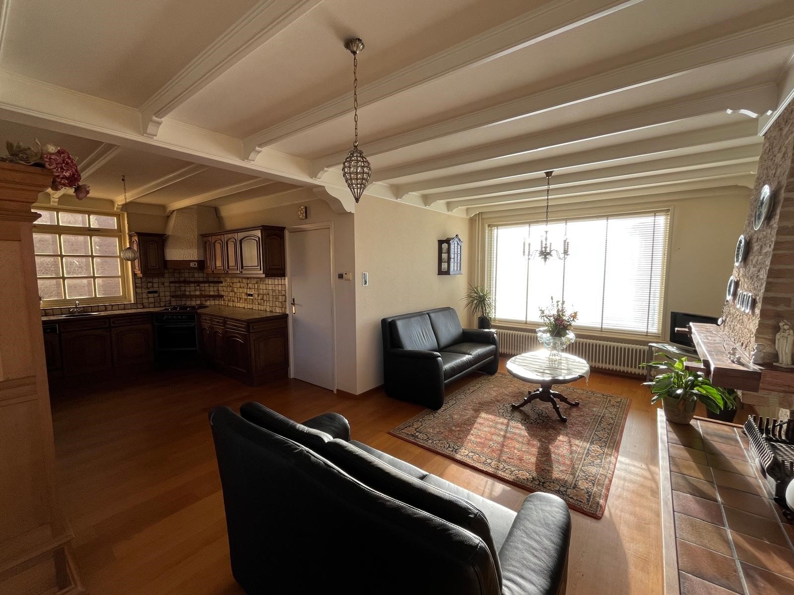 U treft er een woonkamer met veel lichtinval, geheel open verbonden met de keuken en de tuinkamer. Tevens is er een open haard.