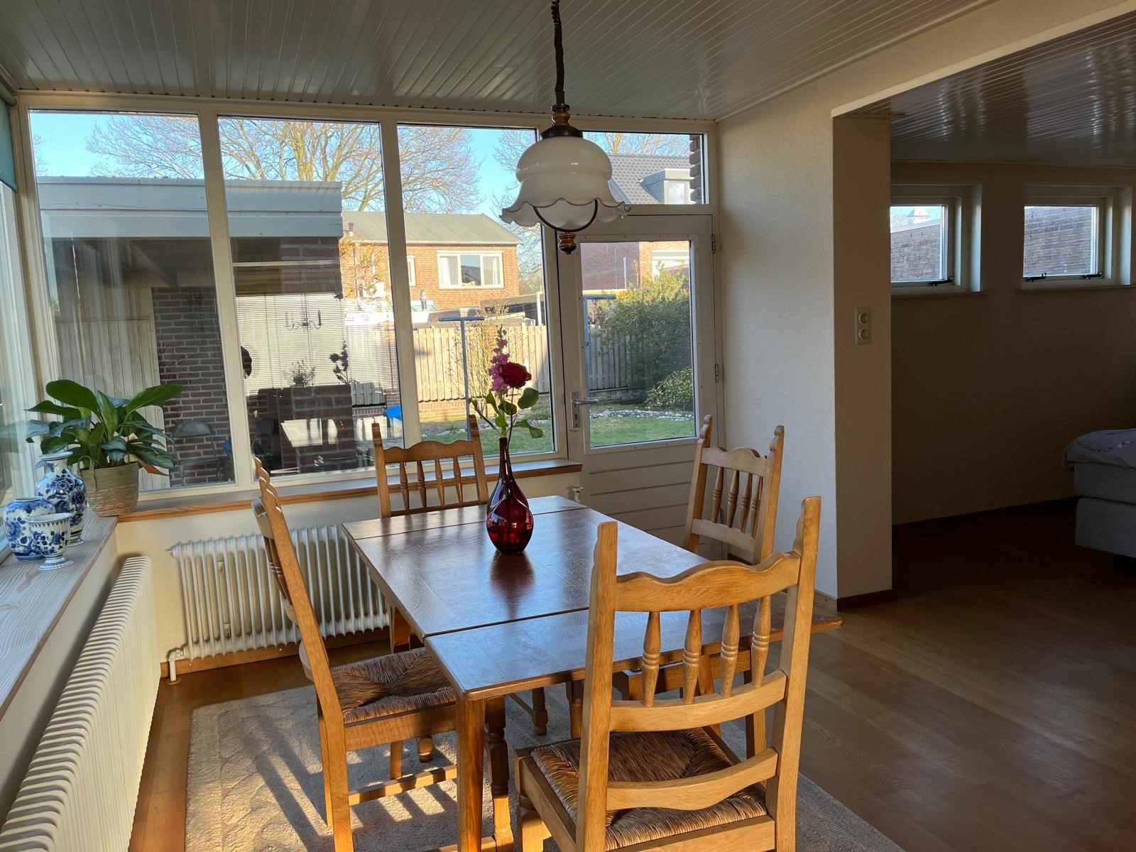De ruim opgezette tuinkamer is te bereiken via de achtertuin. De ruimte is nu gedeeltelijk in gebruik als slaapvertrek.