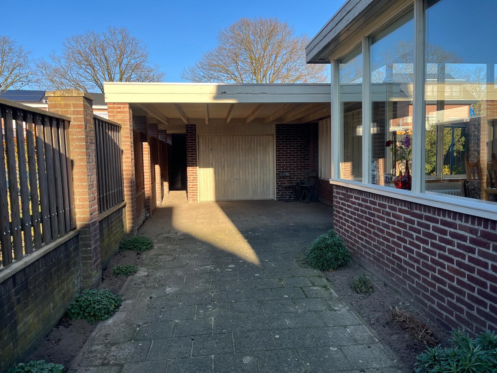 De beschutte achtertuin is te bereiken via de oprit en carport. De afscheidingen zijn geheel in eigendom. Deze staan op eigen grond.