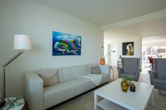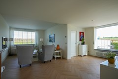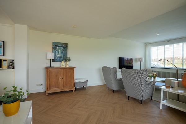 L-vormige woonkamer met zit- en eetgedeelte, PVC vloer