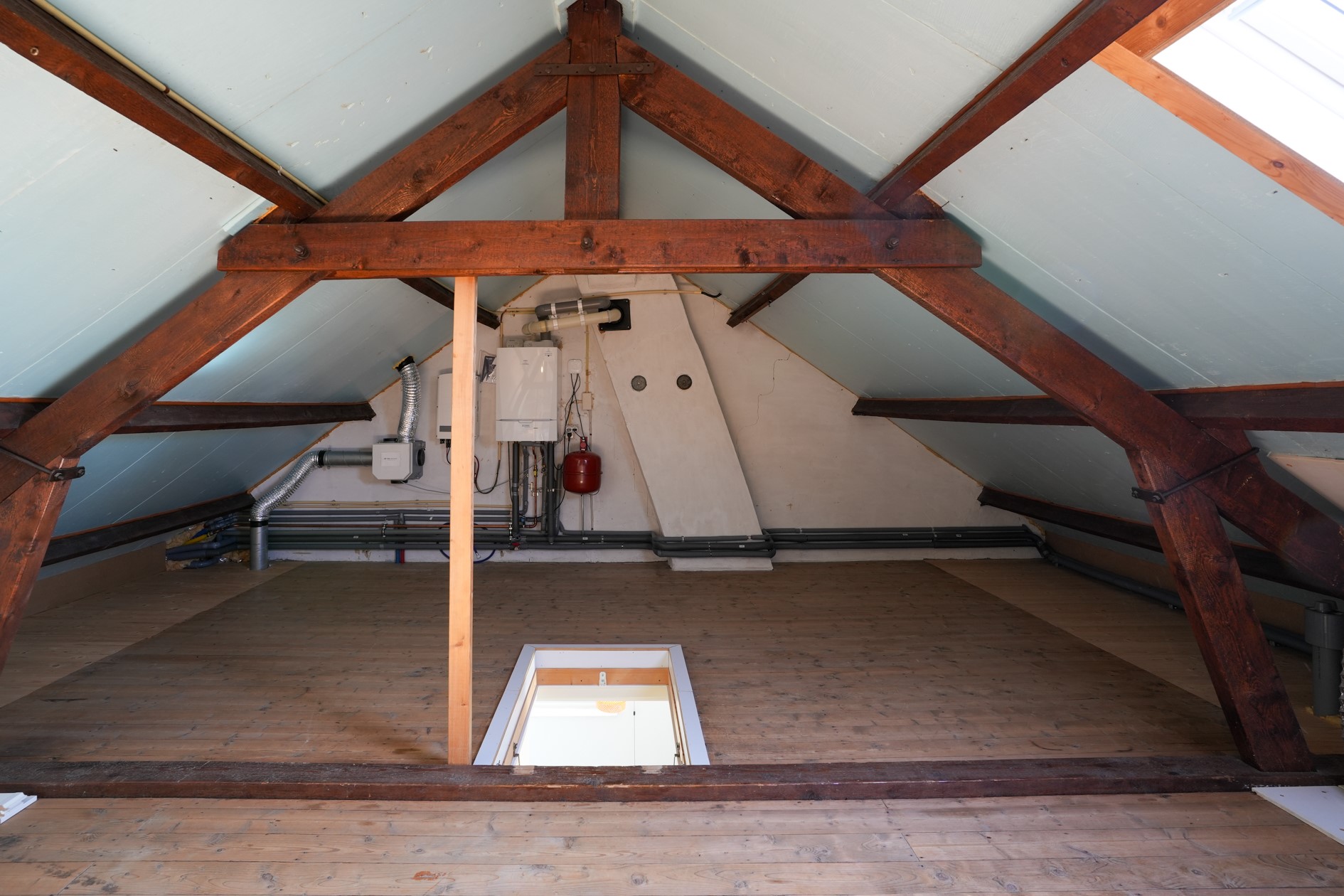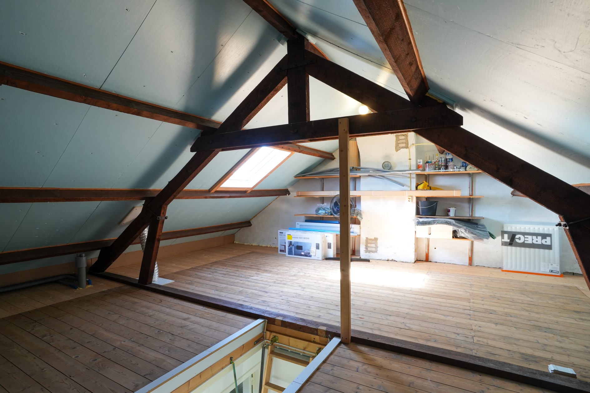 Via vaste trap bereikbare zolderverdieping met CV installatie, omvormer, mechanische ventilatie en dakraam