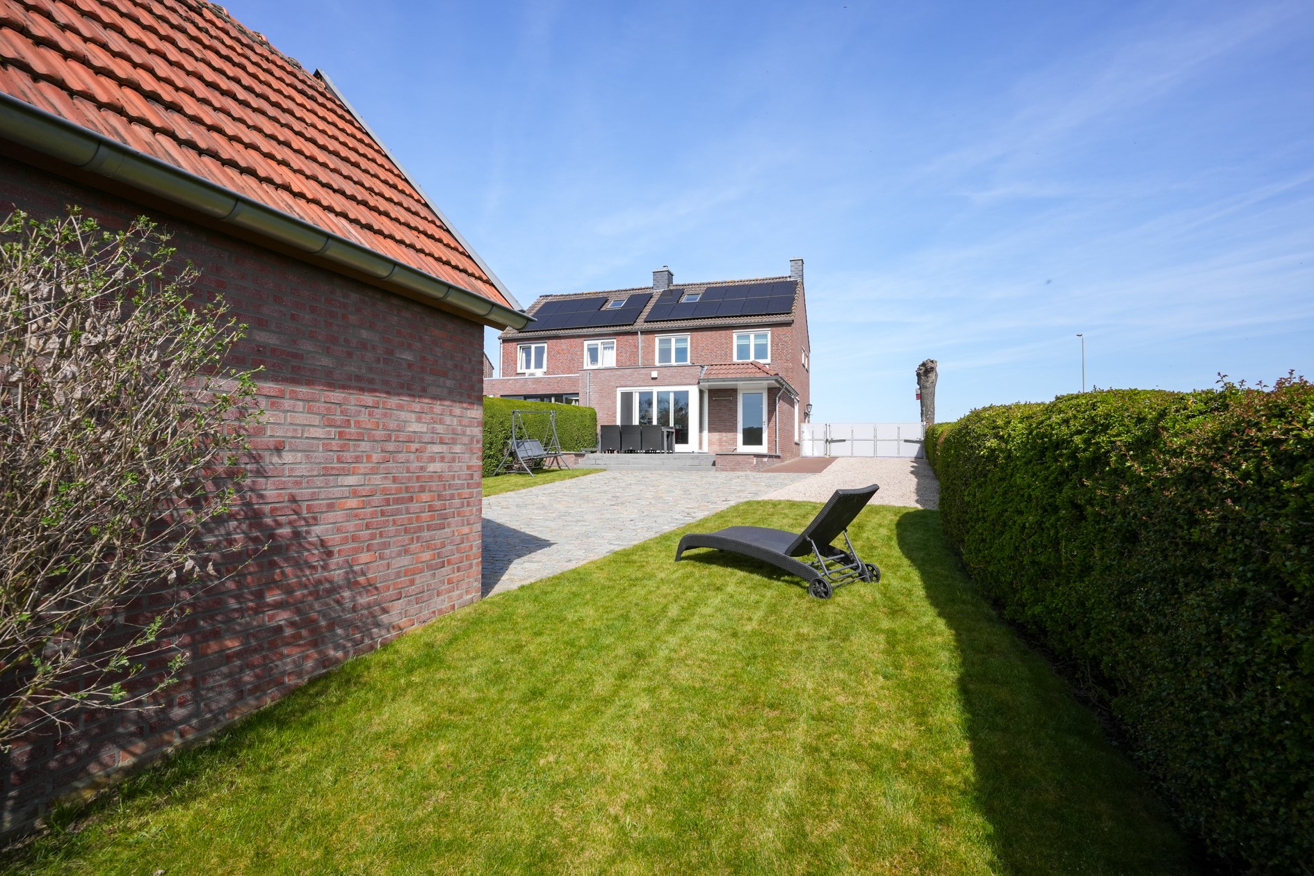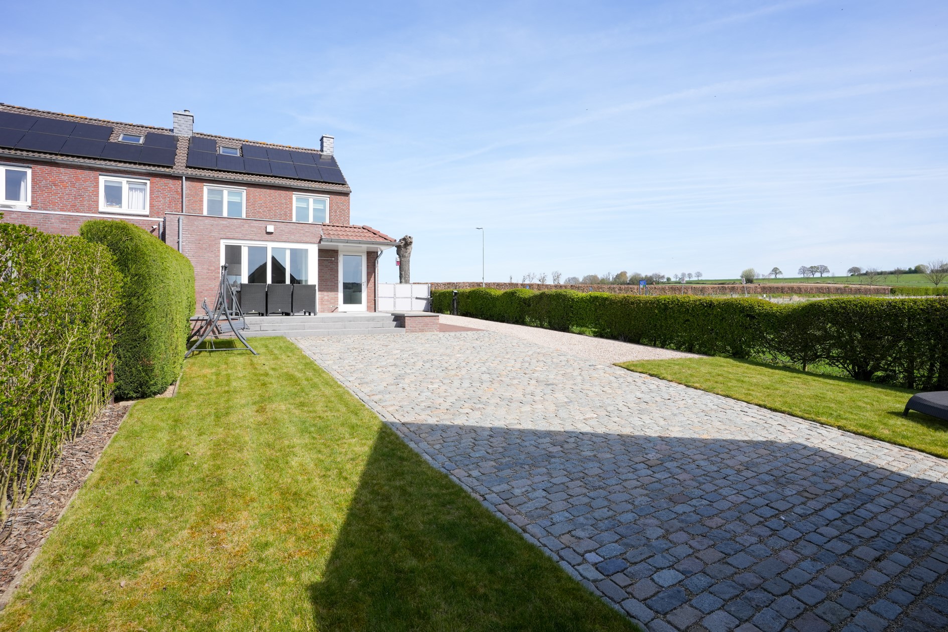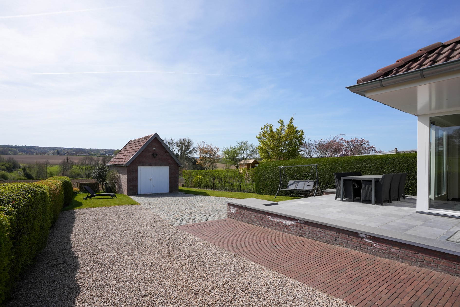 - Oprit met parkeergelegenheid voor meerdere auto’s, onderhoudsvriendelijke tuin op het zuiden met vrij uitzicht