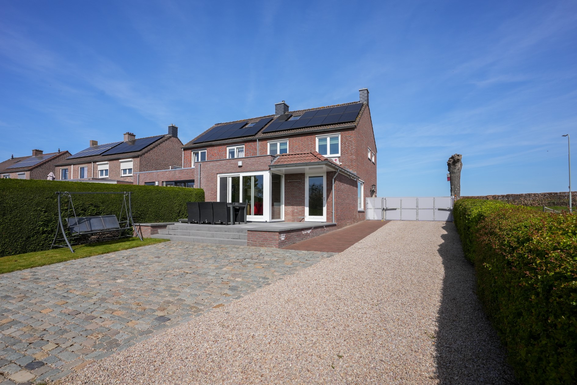 - Oprit met ruimte voor meerdere auto’s en elektrische poort, auto oplaadpunt, alarmsysteem en camerabeveiliging