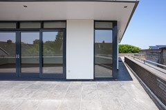 Dakterras rondom de gehele woning voorzien van hardstenen tegels