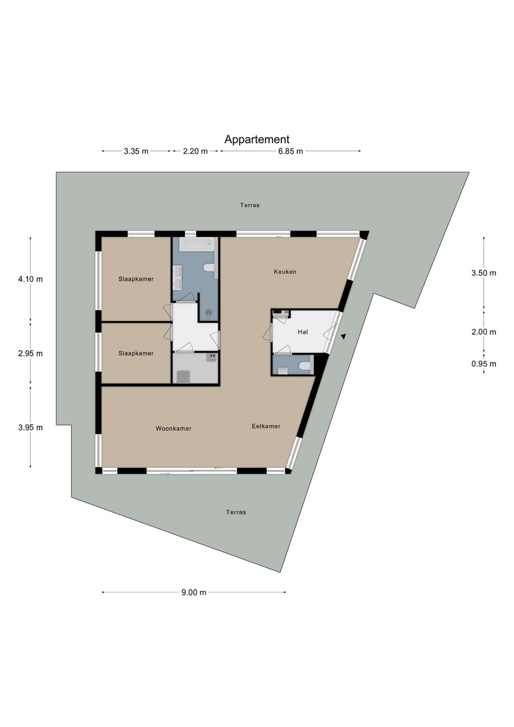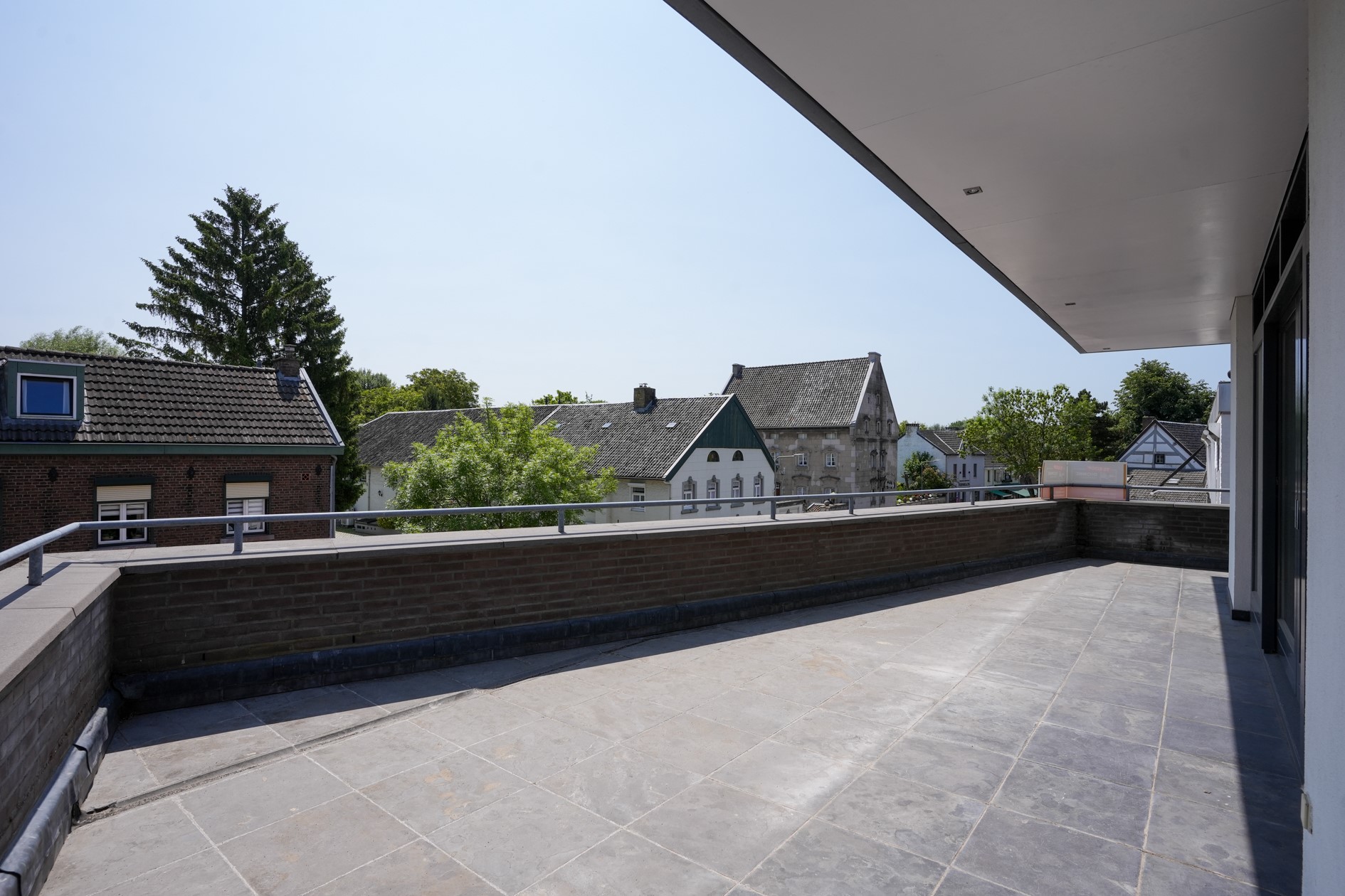 Uniek wonen in een luxe penthouse boordevol licht, royale leefruimtes én een riant balkon rondom. Met een ligging centraal in sfeervol Mechelen met mooi uitzicht op de authentieke kern aan de voorzijde en de rust van het groene Heuvelland aan de achterzijde is dit een fantastisch appartement om te bewonen. Een ideale locatie, de dagelijkse voorzieningen zoals buurtsuper, bakker en bushalte liggen letterlijk aan je voeten. En heb je geen zin om te koken? Dan ga je lekker een hapje eten bij de benedenburen of een ander restaurantje in het dorp. Natuurlijk loop je ook in een paar minuten naar de weilanden of bossen voor een heerlijke wandeling. Via de privé opgang aan de rechterzijde van het gebouw loop je naar de stijlvolle entree van de woning, direct vallen de strakke belijningen, dak overstekken en moderne afwerking op. De ruime ontvangsthal met gastentoilet is een prettige binnenkomer. Daarna worden we verrast door een unieke leefruimte, royaal van opzet en badend in het licht door de grote raampartijen rondom. De woonkamer aan de voorzijde is heerlijk ruim, de dubbele schuifpui geeft toegang naar het dakterras met zicht op het dorp. Aan de achterzijde is de semi open keuken gesitueerd, de strak witte aanbouwinstallatie is van de gebruikelijke gemakken voorzien, ook hier weer een schuifpui naar het terras aan de rustige achterzijde. Zet jij de eettafel in de keuken of liever in de woonkamer, het kan allebei. Ook is er genoeg ruimte voor bijvoorbeeld een bureau of leeshoek. Via de binnenhal bereiken we de slaapafdeling en aansluitend liggen twee prima slaapkamers. Ook is daar de compleet afgewerkte badkamer met inloopdouche, ligbad, dubbel wastafelmeubel en toilet. De berging met witgoedaansluiting is heel praktisch. Rondom het penthouse is een grote buitenruimte gesitueerd, je kunt letterlijk op ieder moment van de dag een fijn plekje uitzoeken. Of er nu zon of schaduw gewenst is, veel rust of juist een beetje reuring op de achtergrond. Het kan allemaal, aan de ene kant zet je een grote tafel om buiten te eten en op een andere plek een hangmat om lekker te luieren. Natuurlijk behoort ook een privé parkeerplaats en extra berging tot het aanbod. Enig in zijn soort, dat is deze woning zeker en daardoor wellicht jouw nieuwe thuis om zorgeloos te wonen in het Heuvelland.