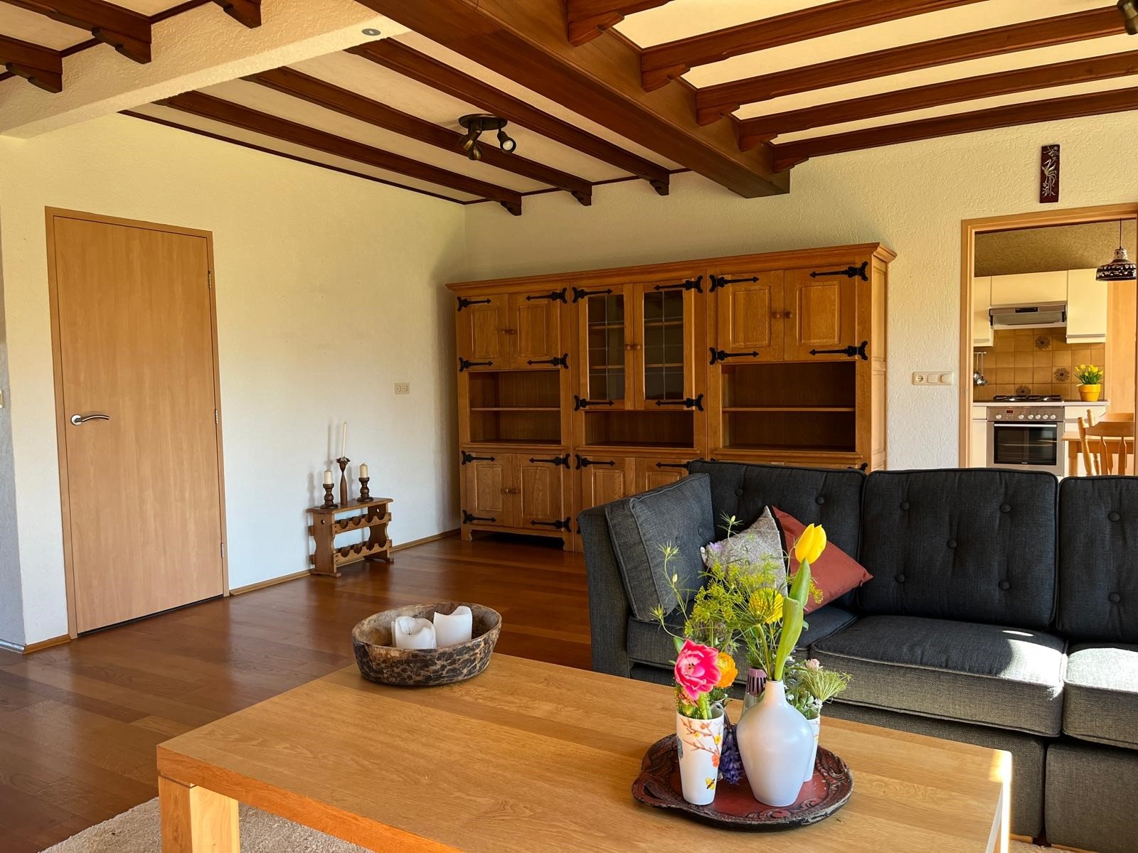 De vloer in de woonkamer is geheel voorzien van een fraaie eiken parketvloer.