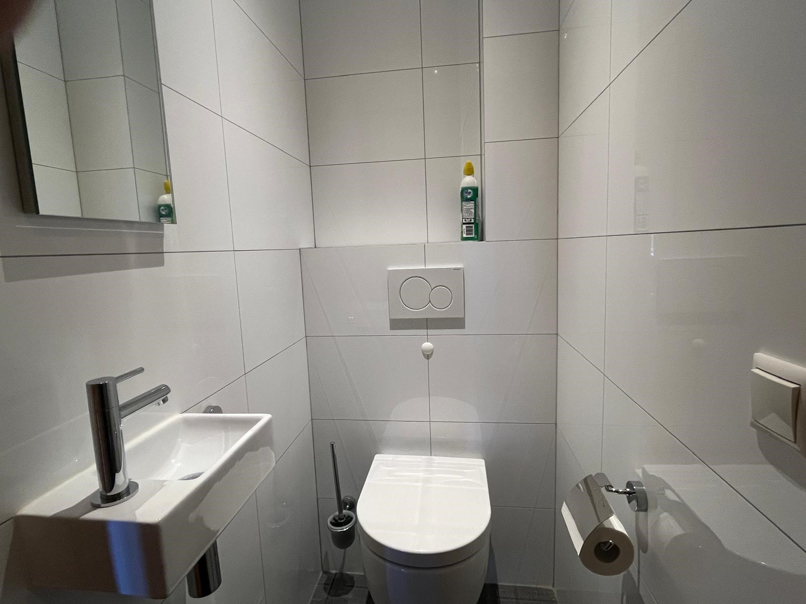 De toiletruimte is vernieuwd en voorzien van een hangend closet.