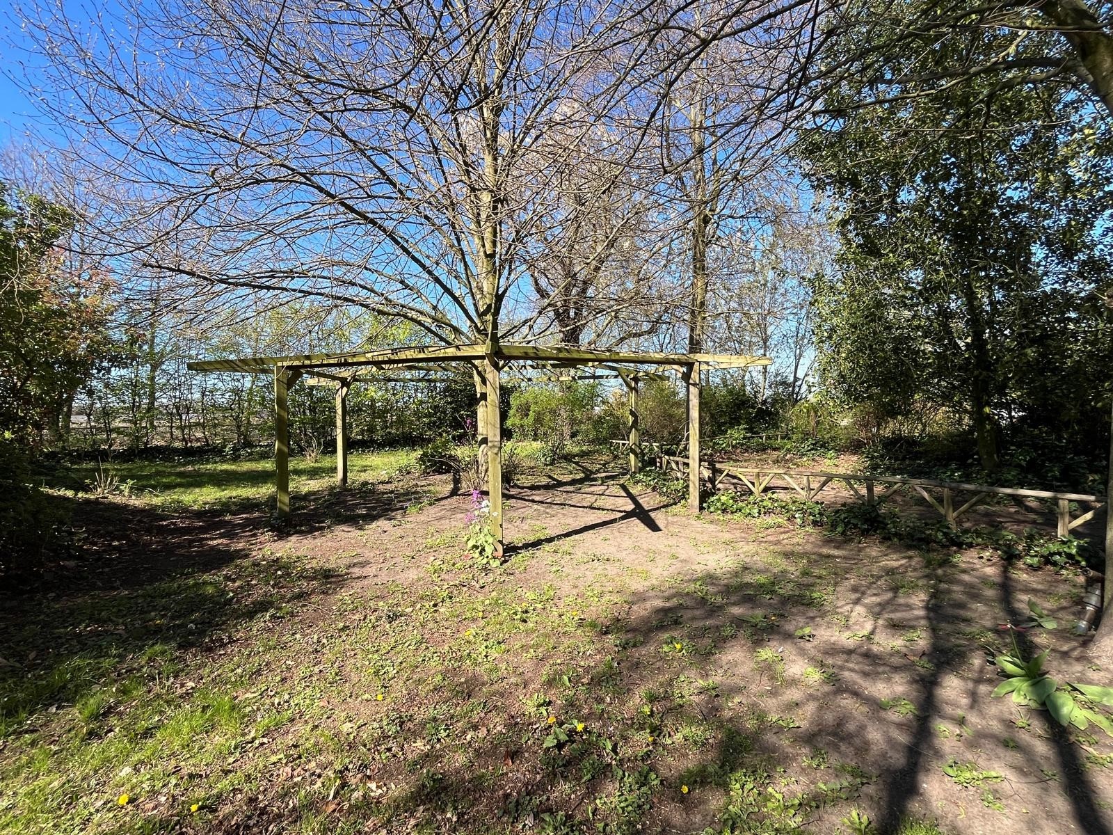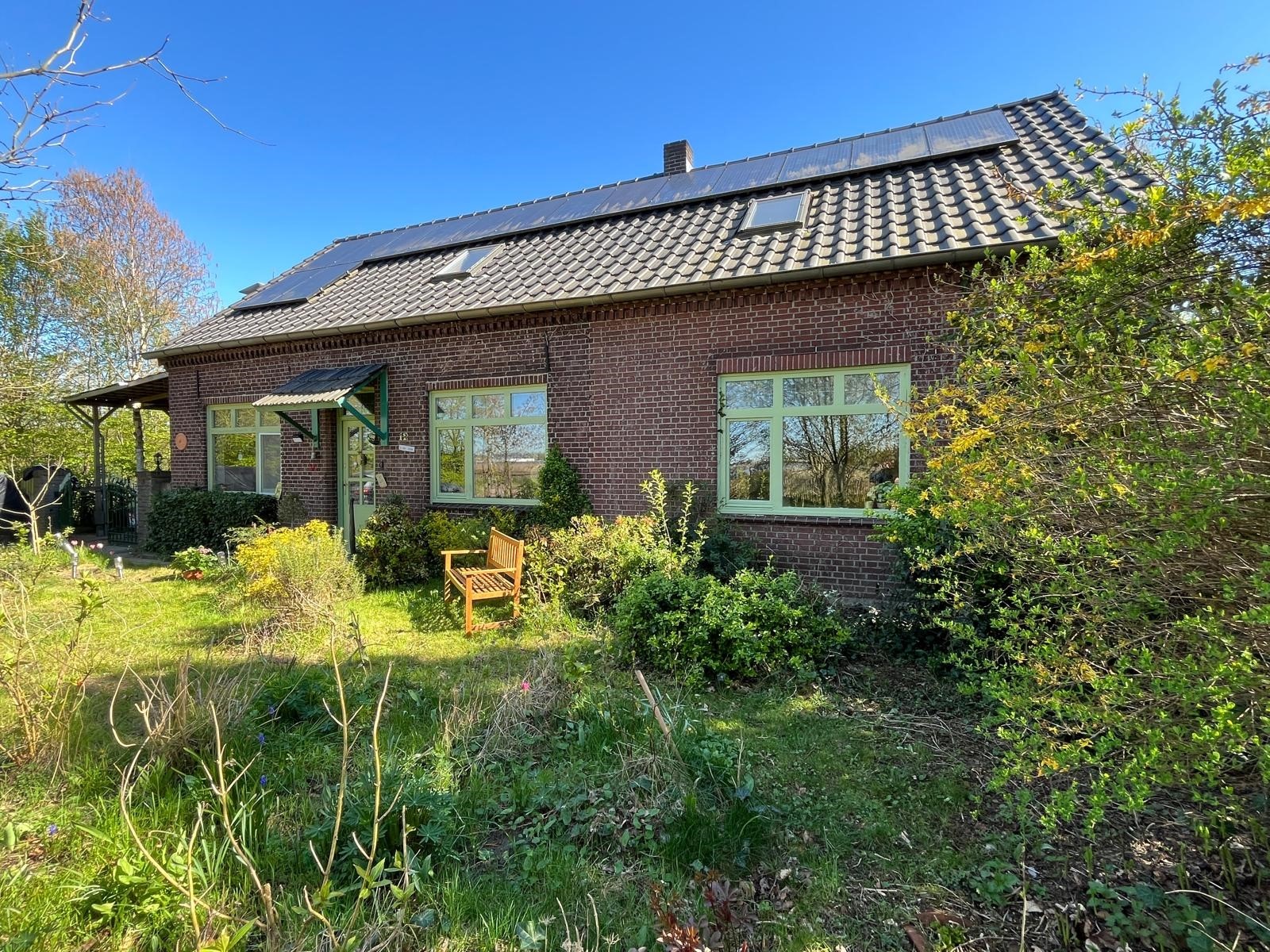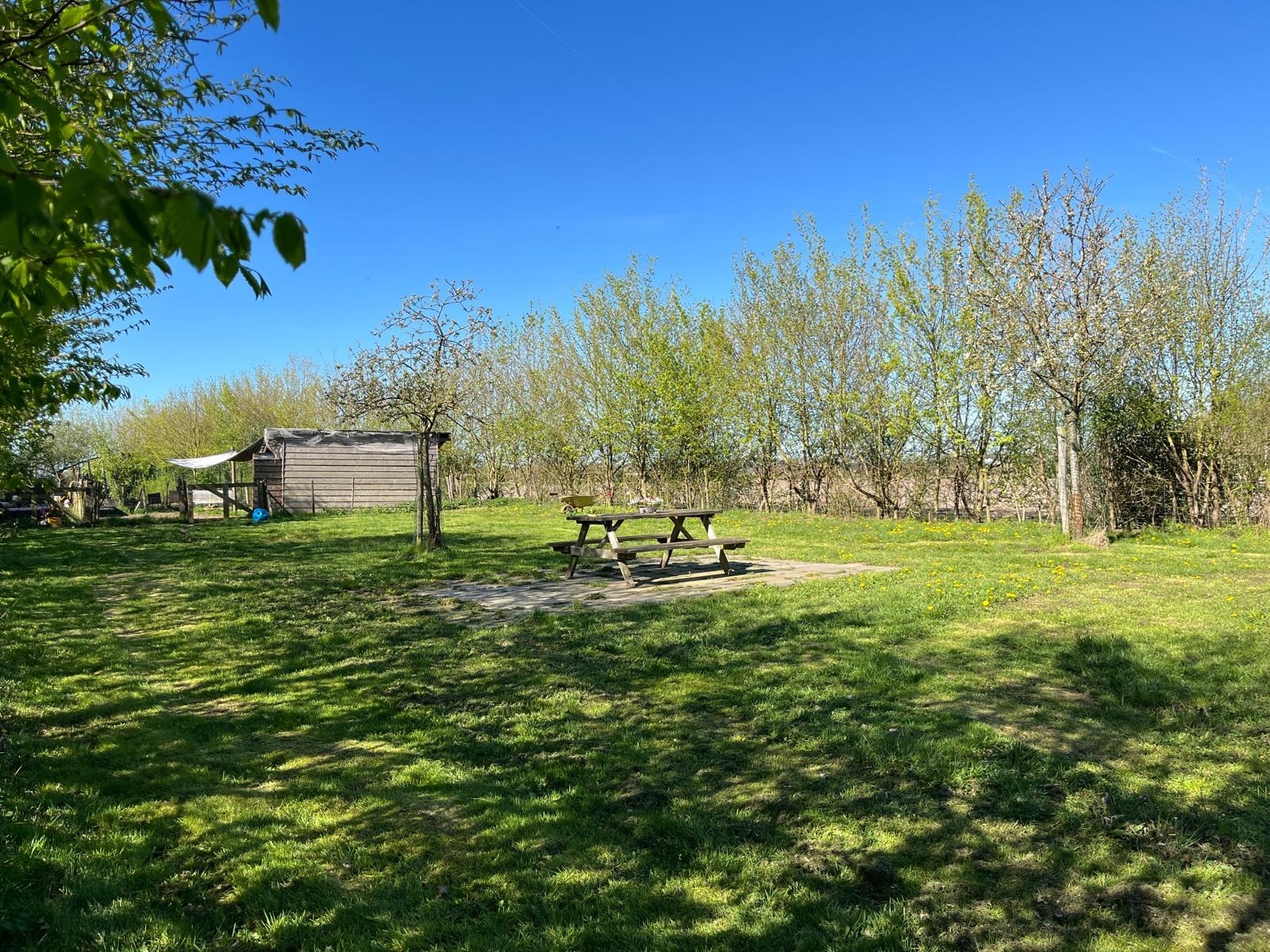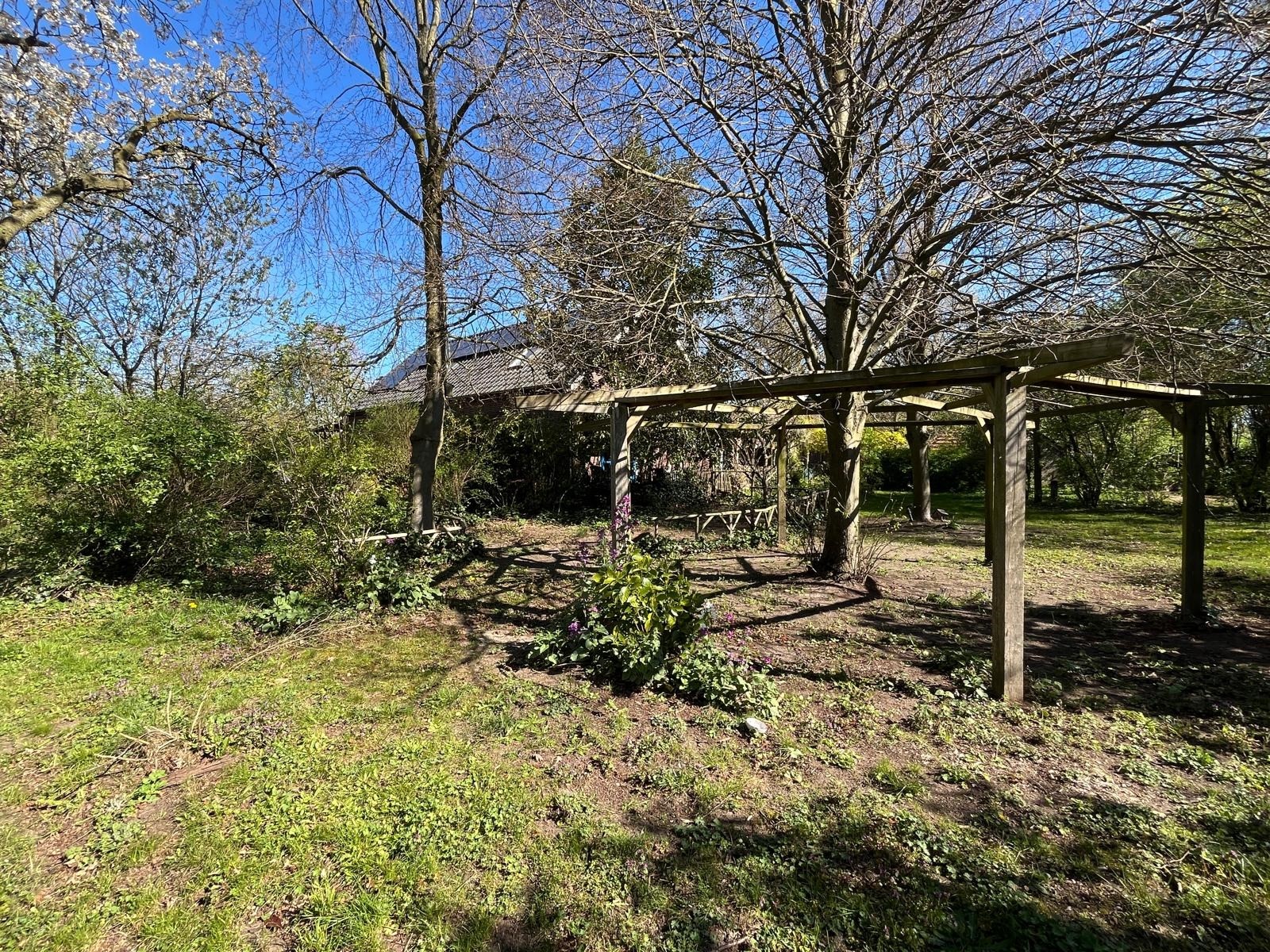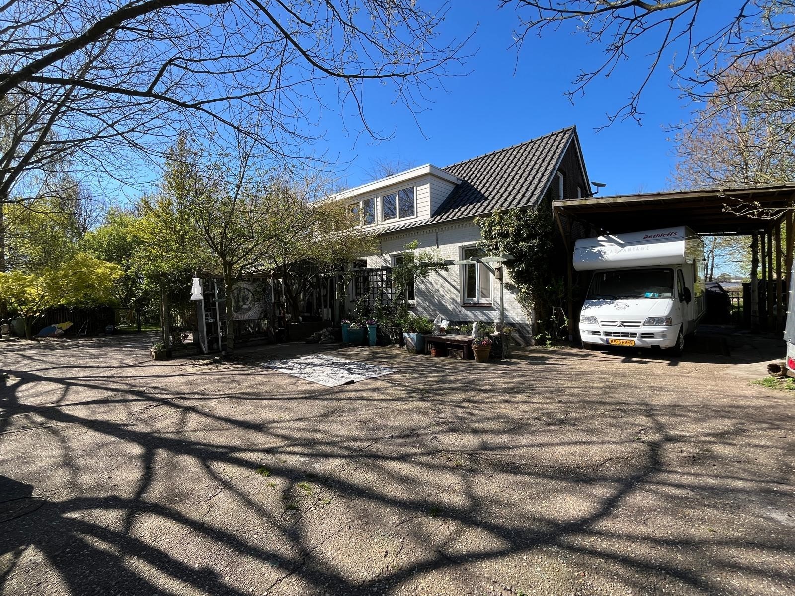 Aan de voorzijde is de toegang middels de oprit en overkapping. Er is voldoende rust en een geweldige privacy. Tevens is er nog een houtopslag en een stenen kippenhok/schuur. De tuin loopt door achter de schuur en is verdeeld in een groentetuin met kweekkas, struinpaden met doorzichten… en doorgang naar het weiland met dierverblijf met diverse fruitbomen.