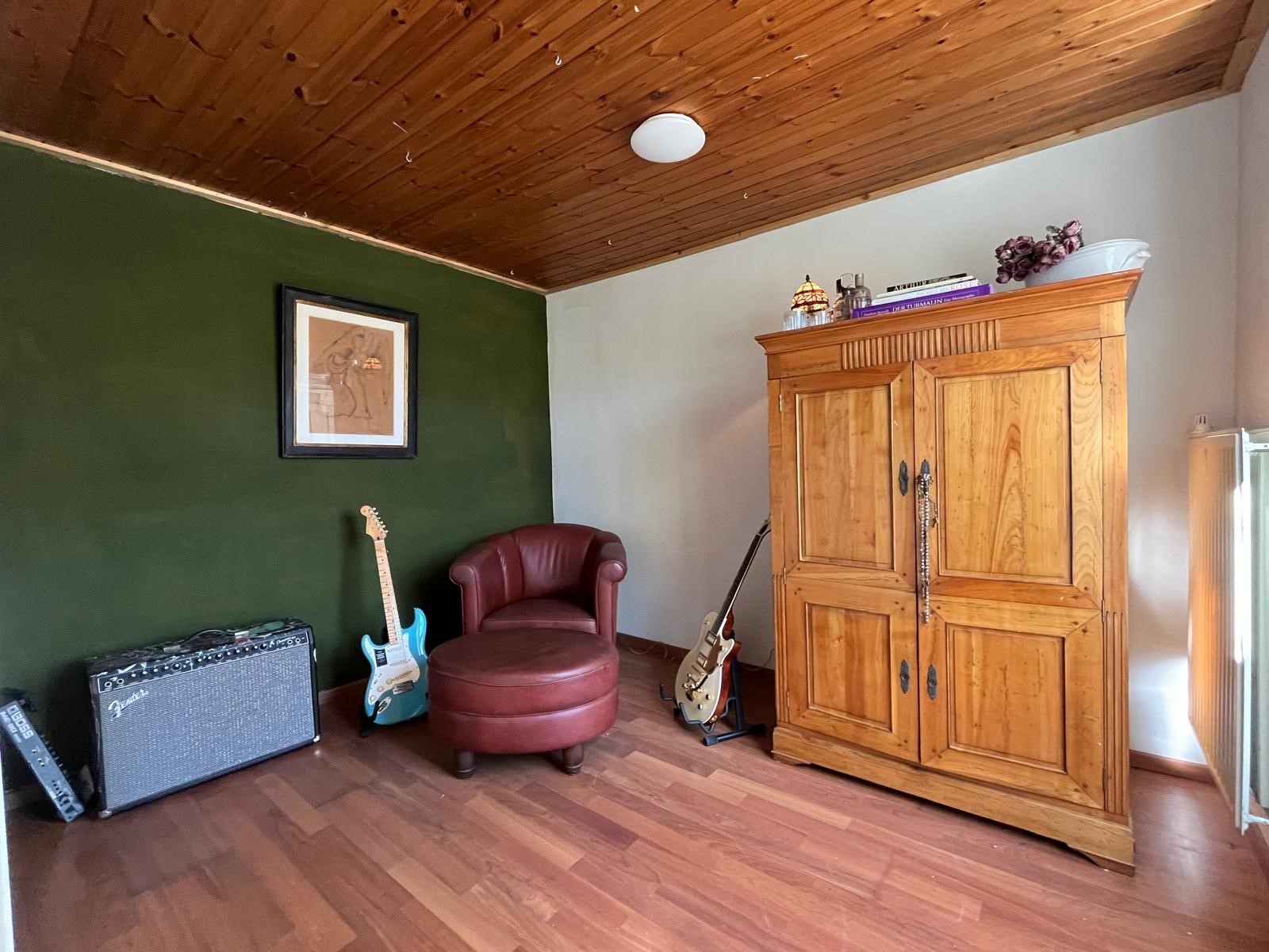 De slaapkamer doet nu dienst als muziekruimte.