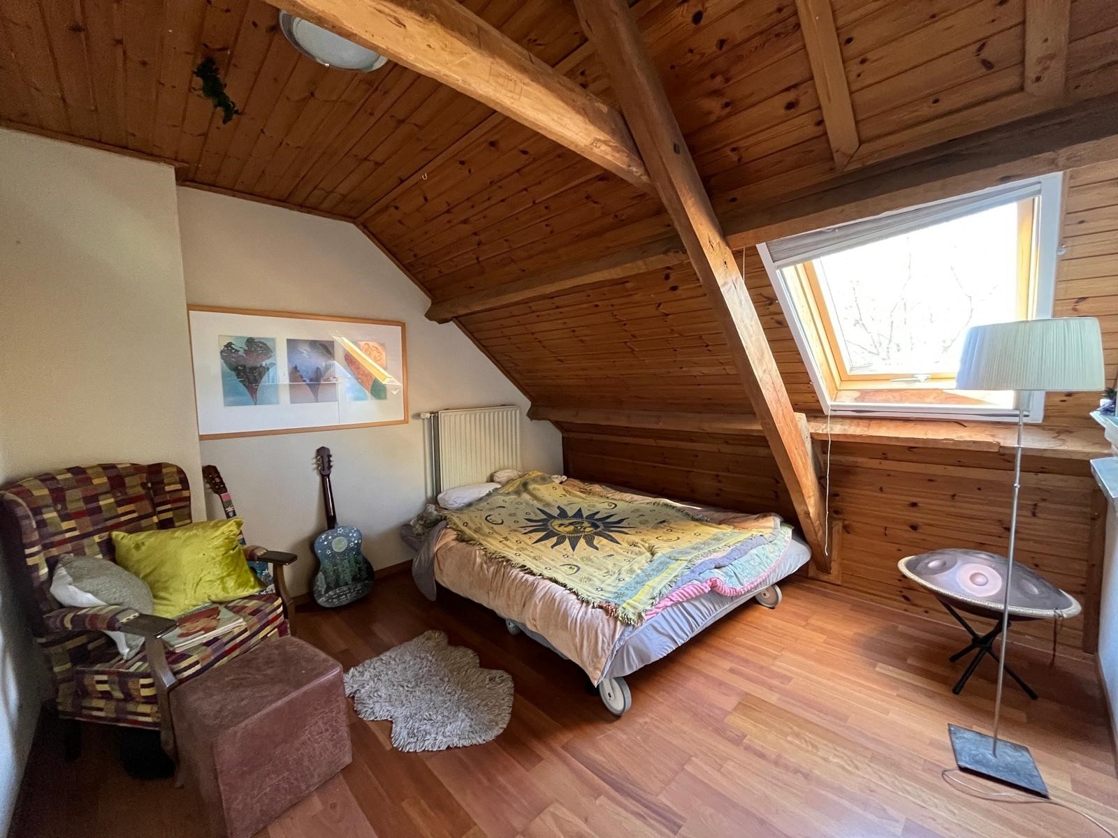 De slaapkamer is voorzien van een Velux dakraam.
