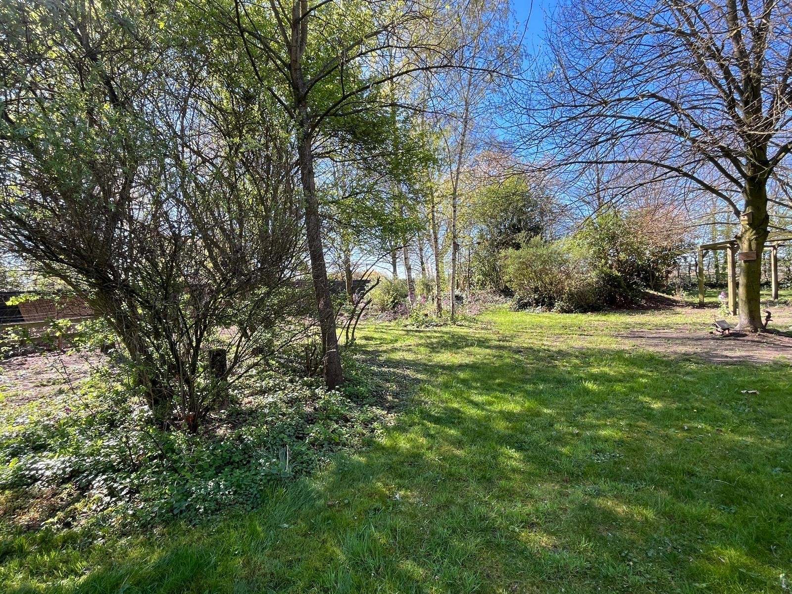 De tuin rondom is natuurlijk en parkachtig ingericht met enkele ruime terrassen en een vijver, gazon en borders. U kunt aan de zijkant en achterzijde heerlijk verblijven…