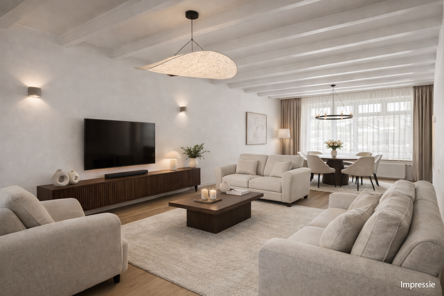 - Doorzonwoonkamer met elektrisch bedienbare rolluiken aan achterzijde
