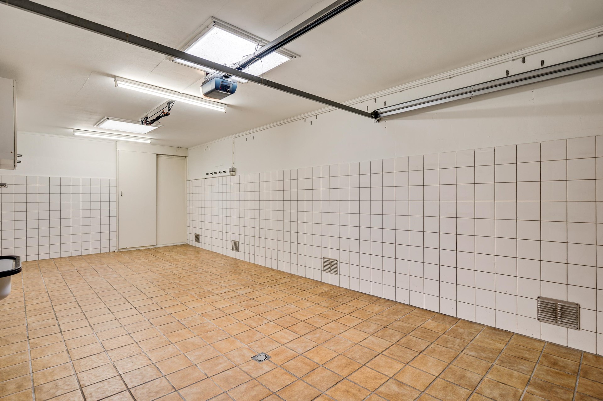 De geschakelde garage is voorzien van een elektrische roldeur, lichtkoepel, water, elektra en verwarming. Een praktische ruimte die zich uitstekend leent voor hobby’s, opslag of het stallen van fietsen en gereedschap.
