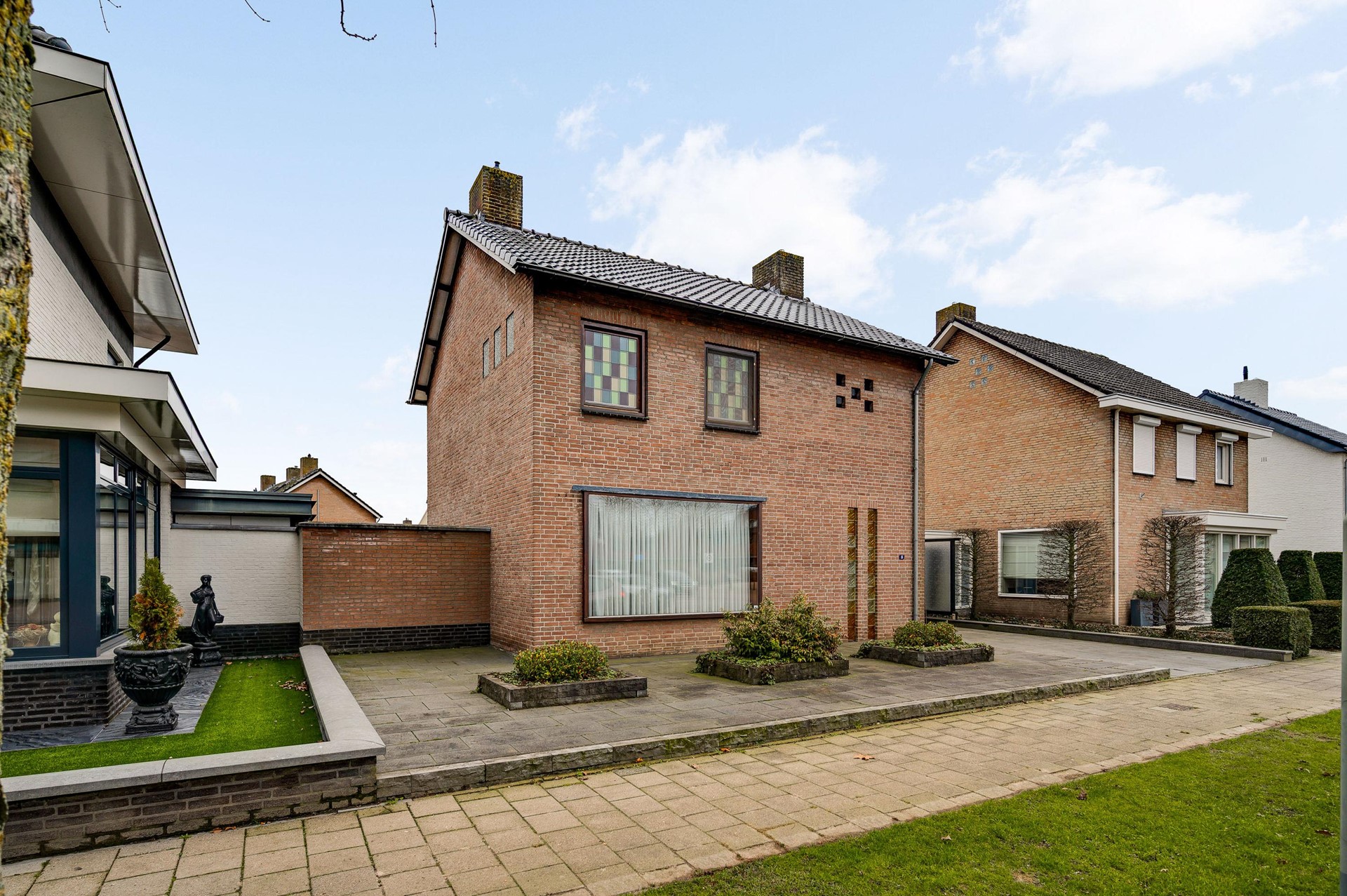 - Vrijstaande woning met diepe oprit en geschakelde garage (v.v. elektrische roldeur)
