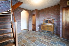 Entree, hal met leistenen vloer en trapopgang, meterkast