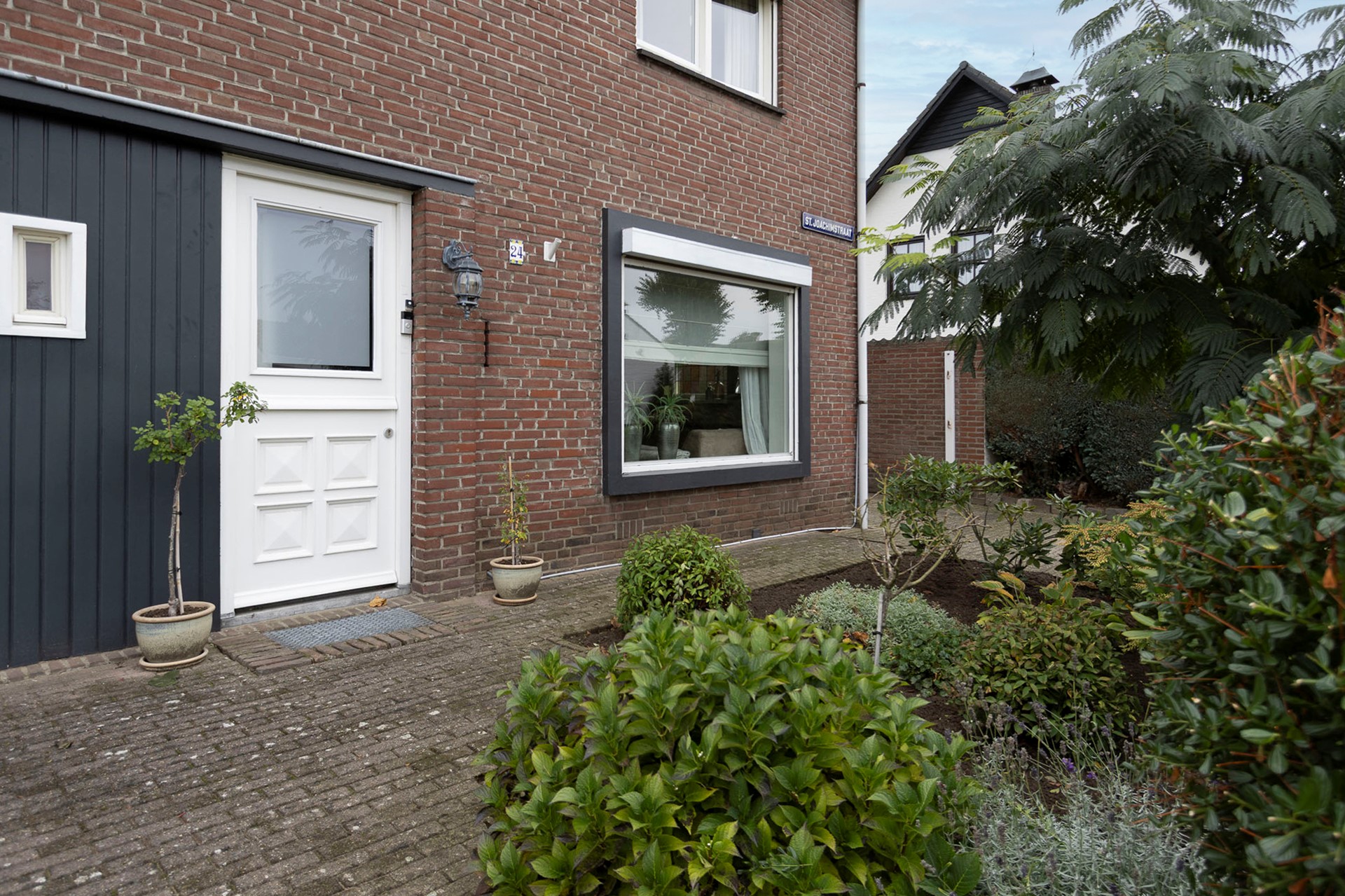 Naast de woning is de lange oprit gesitueerd die voor de garage uitkomt. Deze oprit is ter plaatse van de aanbouw weer een stukje breder.