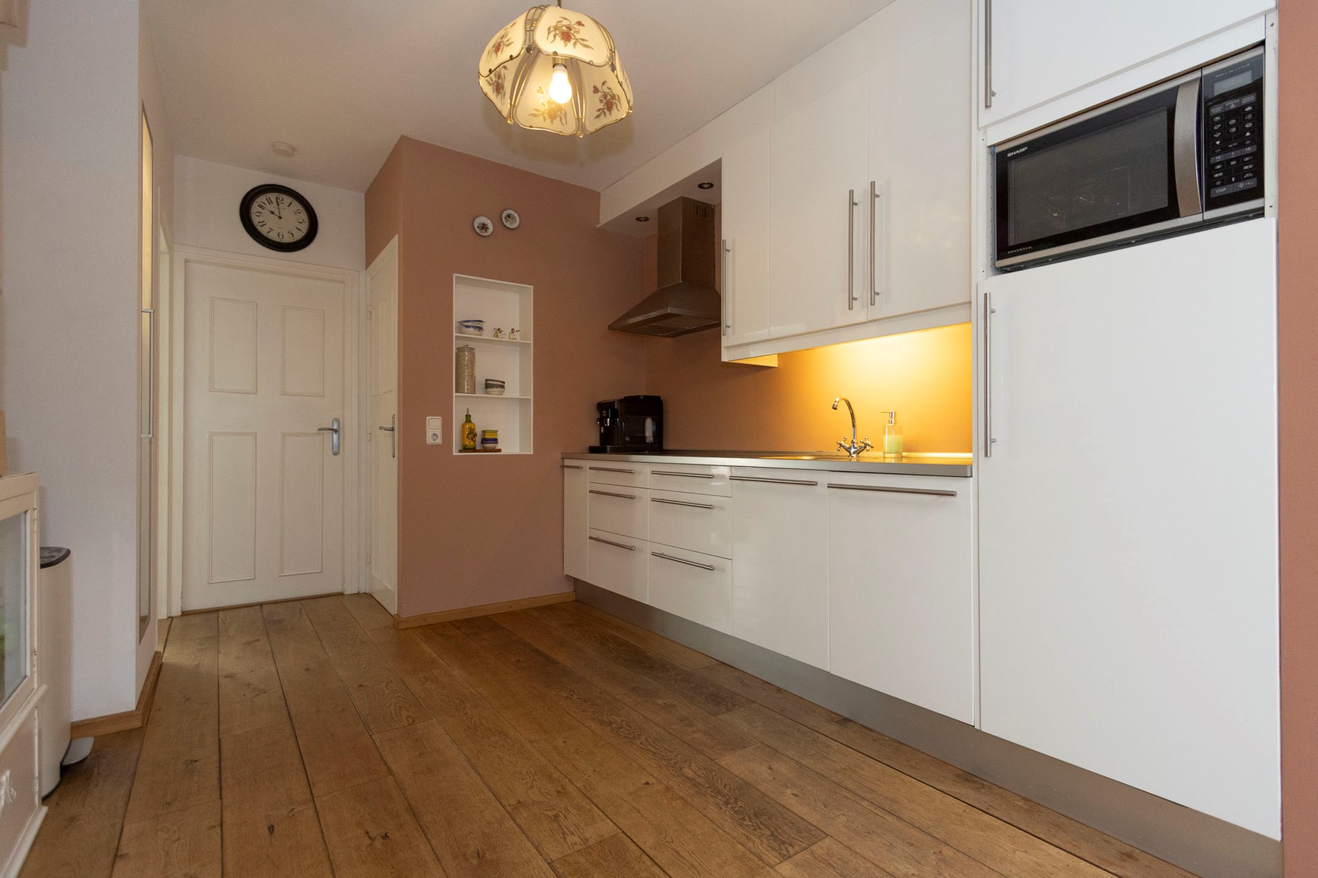 De keuken en woonkamer zijn sfeervol uitgevoerd met ‘n karakteristieke lichte houten vloer.