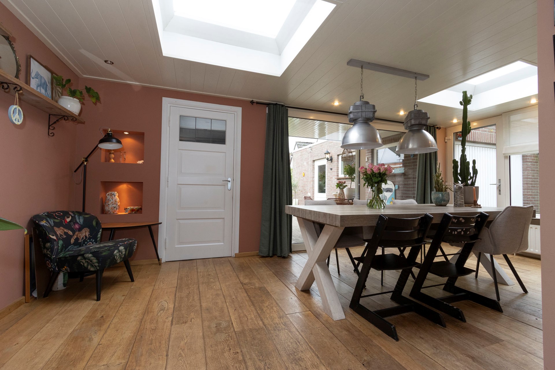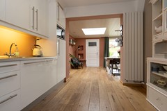 Via keuken naar de woonkamer en naar aanbouw hierachter aansluitend.