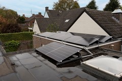 Deze halfvrijstaande woning is uitgerust met houten buitenkozijnen met HR++glas. Meerdere raamvleugels boven, zijn in draai-kiep uitgevoerd en op het platte dak liggen 7 recent geplaatste zonnepanelen. De aanbouw is uitgevoerd met kunststof kozijnen met isolatieglas.