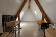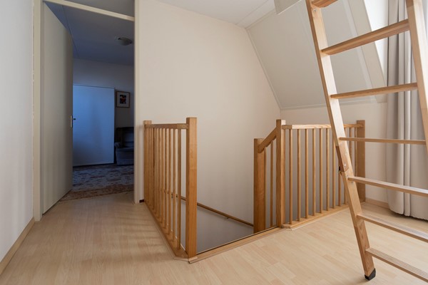 Via een vlizotrap aan plafondluik is de bergzolder bereikbaar. Deze verdieping biedt verrassend veel opslagruimte en is ideaal voor het opbergen van seizoensspullen.