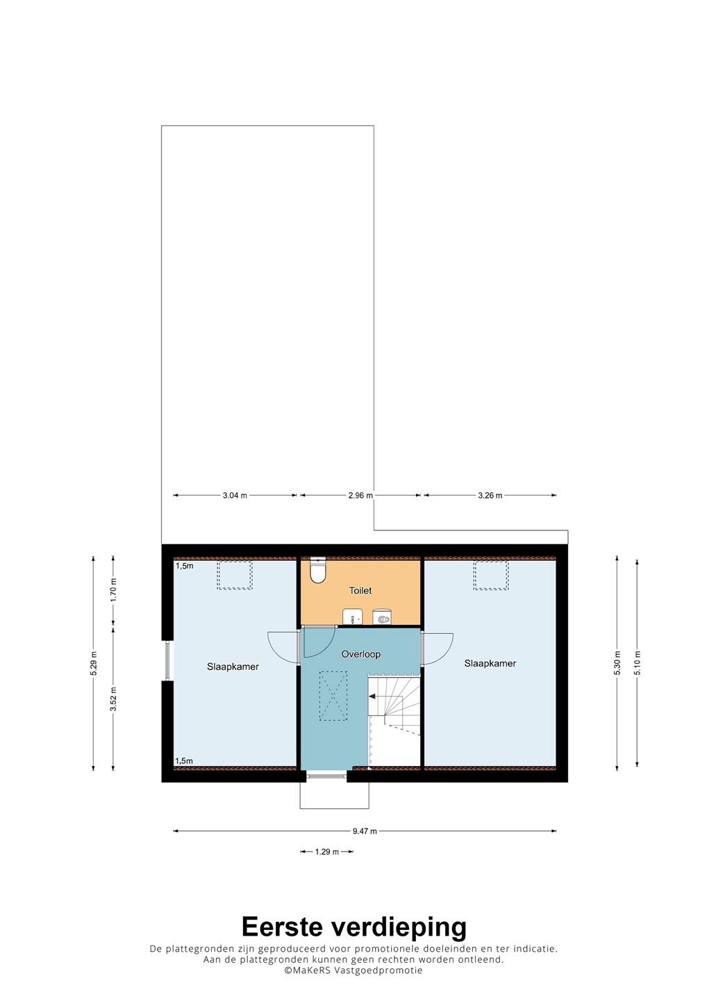 Op de eerste verdieping bevinden zich twee ruime slaapkamers, ideaal als werk- of logeerkamers. Daarnaast is er een extra wasruimte aanwezig, voorzien van een wastafel en toilet. Hier zijn ook de cv-ketel (2006) en mechanische ventilatie unit gesitueerd. Deze verdieping biedt volop mogelijkheden voor uiteenlopende woonwensen.