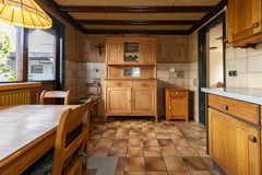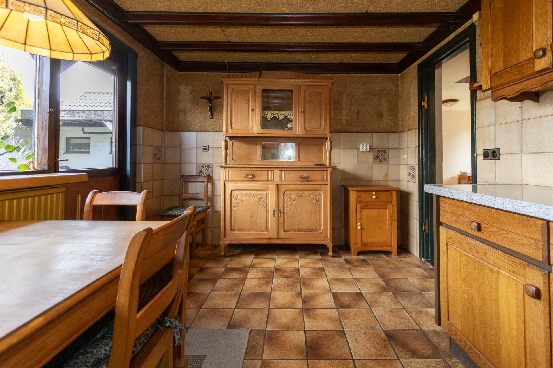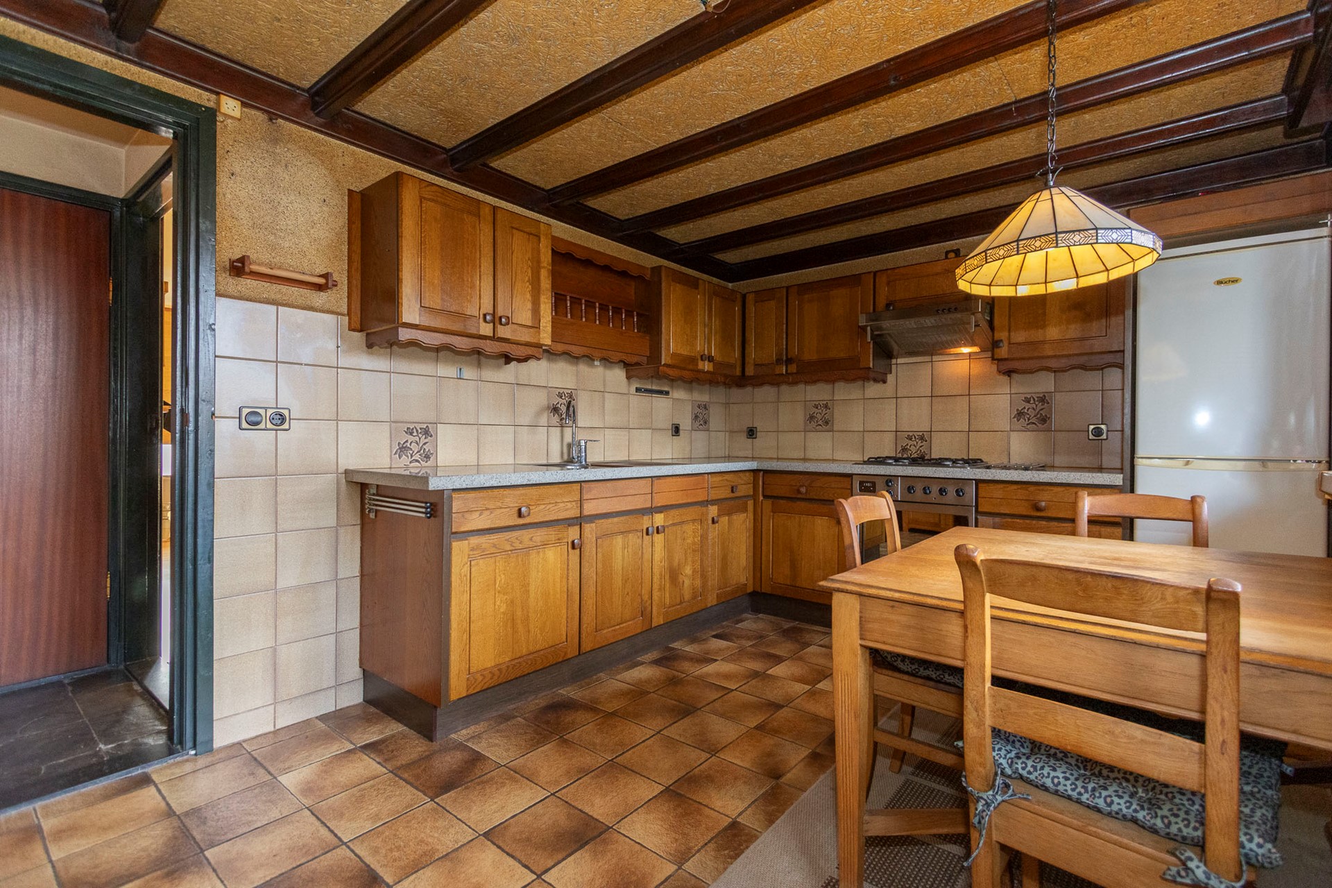 Grenzend aan de woonkamer vind je de ruime hoekkeuken, die volop werk- en opbergruimte biedt. De keuken is uitgerust met een 4-pits gasfornuis, afzuigkap, oven en een losse koelkast. Via de tuindeur loop je direct de binnenplaats op. Ideaal om buiten te eten of in de ochtend van een kop koffie in de tuin te genieten.