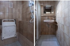 Bij binnenkomst in de woning kom je in de hal, waar je direct toegang hebt tot zowel het aparte toilet als de badkamer. De badkamer, die praktisch op de begane grond is gesitueerd, is voorzien van een inloopdouche en een wastafel met spiegel. Daarnaast tref je hier een handige trapkast aan.