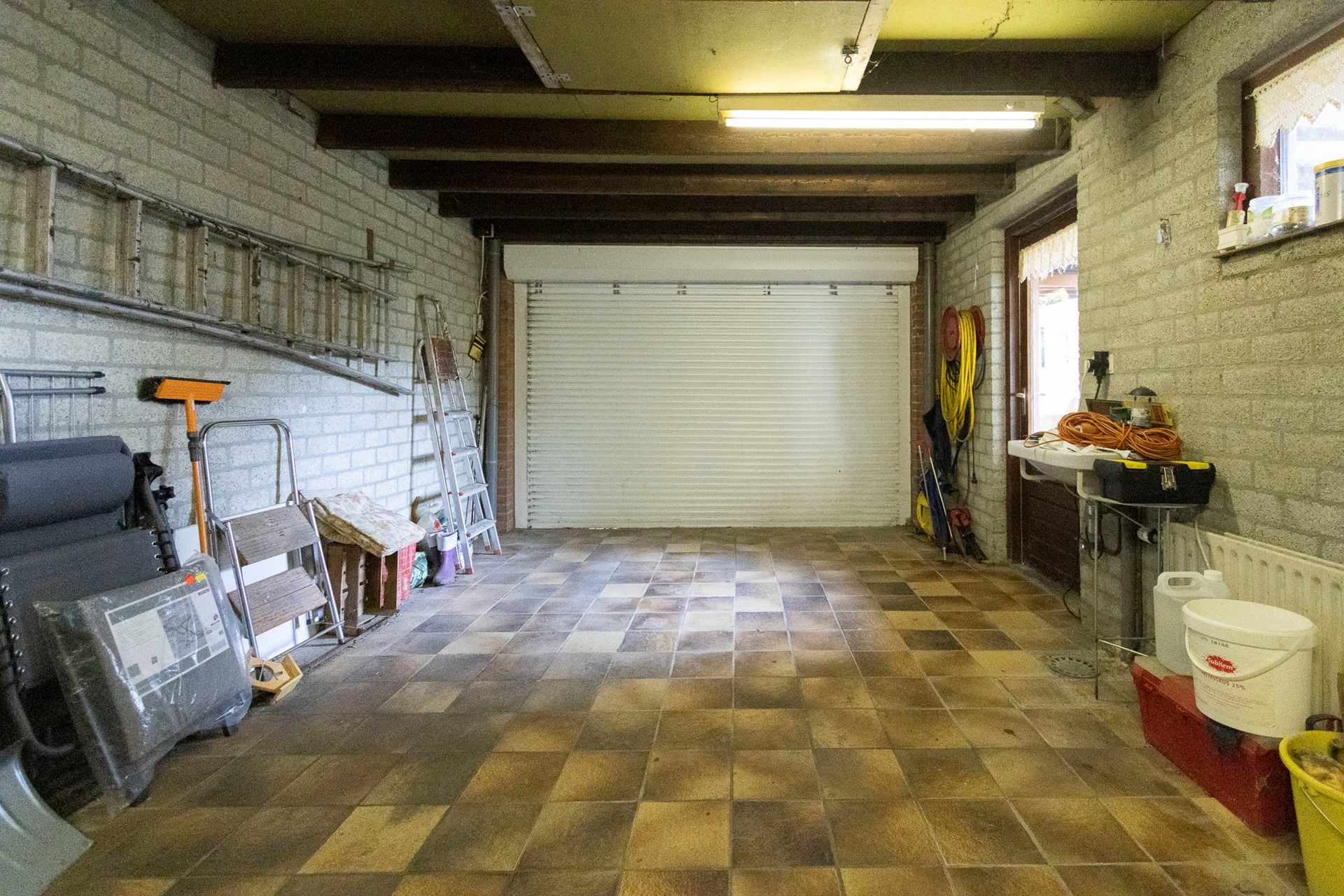 Vanaf de binnenplaats heb je toegang tot de royale garage, die is uitgerust met een elektrische roldeur, verwarming, elektra, water en veel opbergruimte. De diepe oprit met carport biedt volop parkeergelegenheid voor meerdere auto’s.