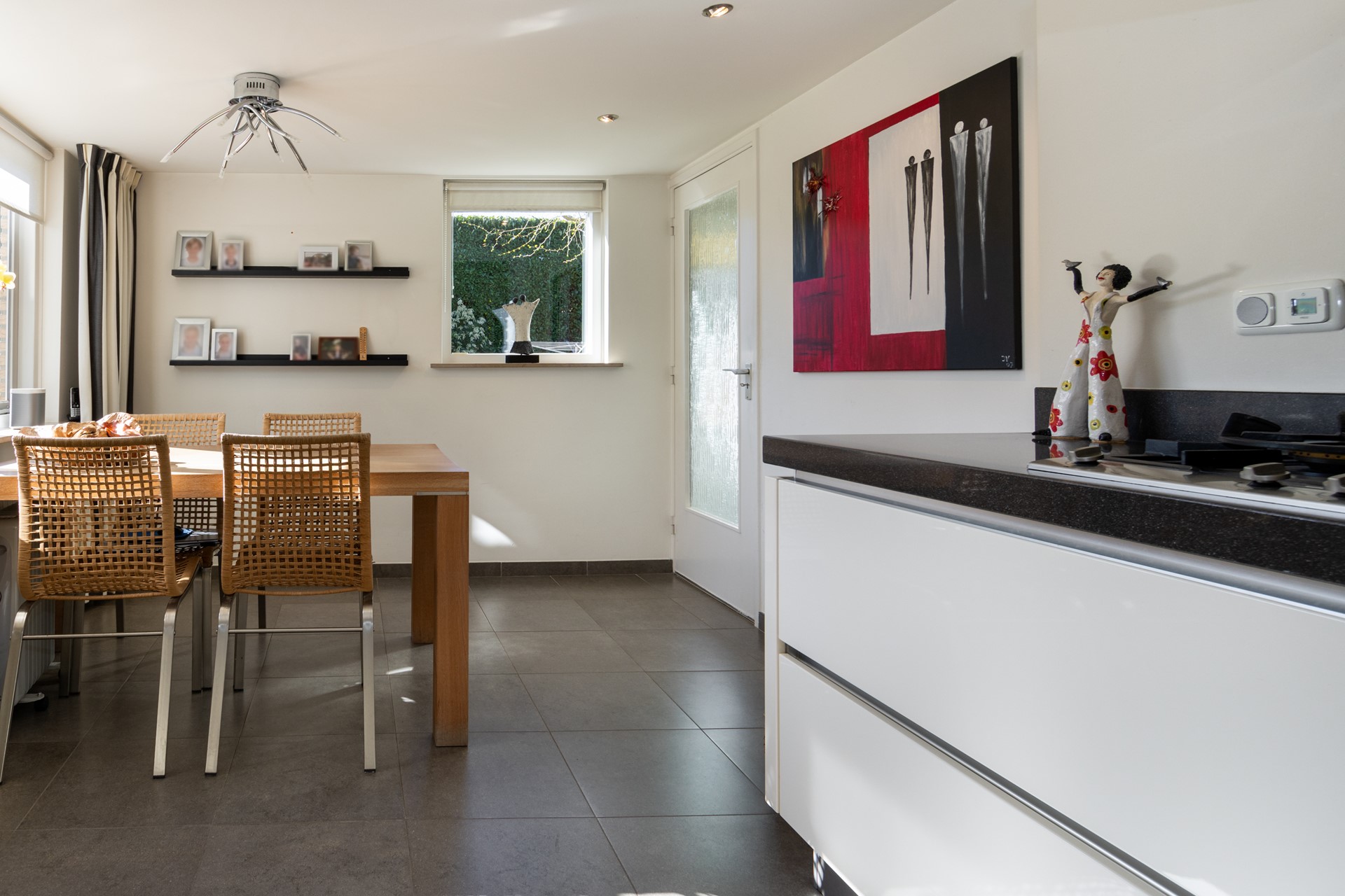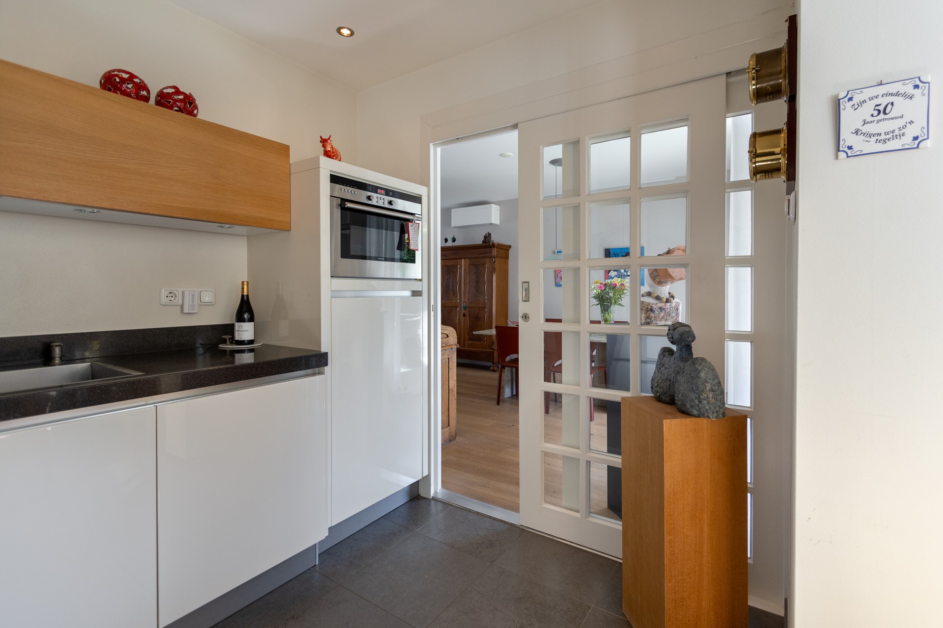 L?vormige woonkamer met afsluitbare deuren naar de keuken en airco (2023)