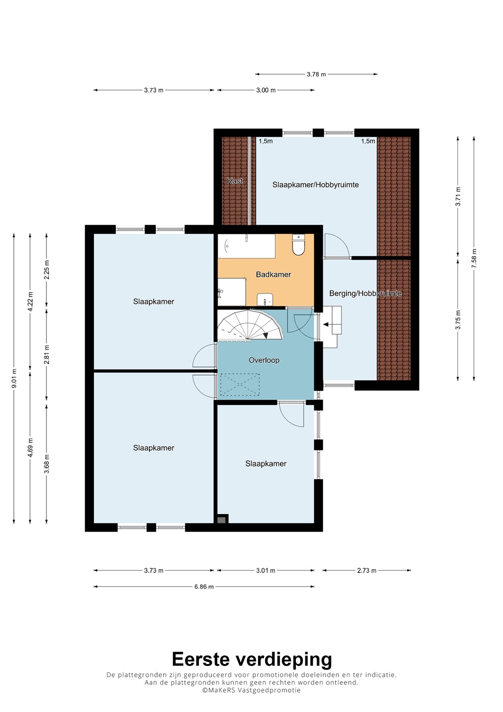 Op de eerste verdieping bevinden zich drie slaapkamers van goed formaat. De kamers zijn licht en praktisch in te richten als slaap-, werk- of kinderkamer. De bovenverdieping is voorzien van horren en rolluiken die zorgen voor een aangenaam klimaat en slaapcomfort. Een van de slaapkamers is uitgerust met een airco-unit.
