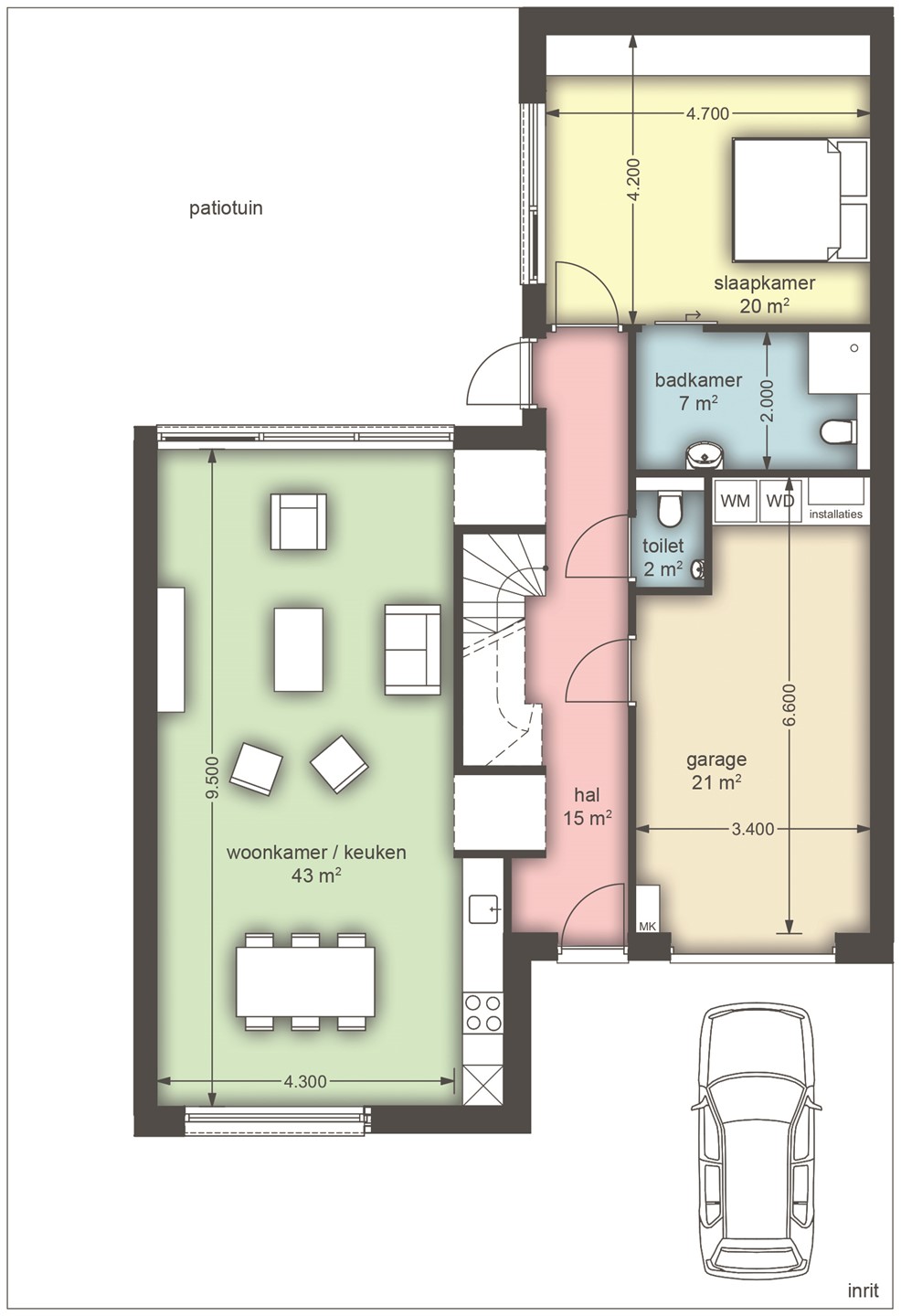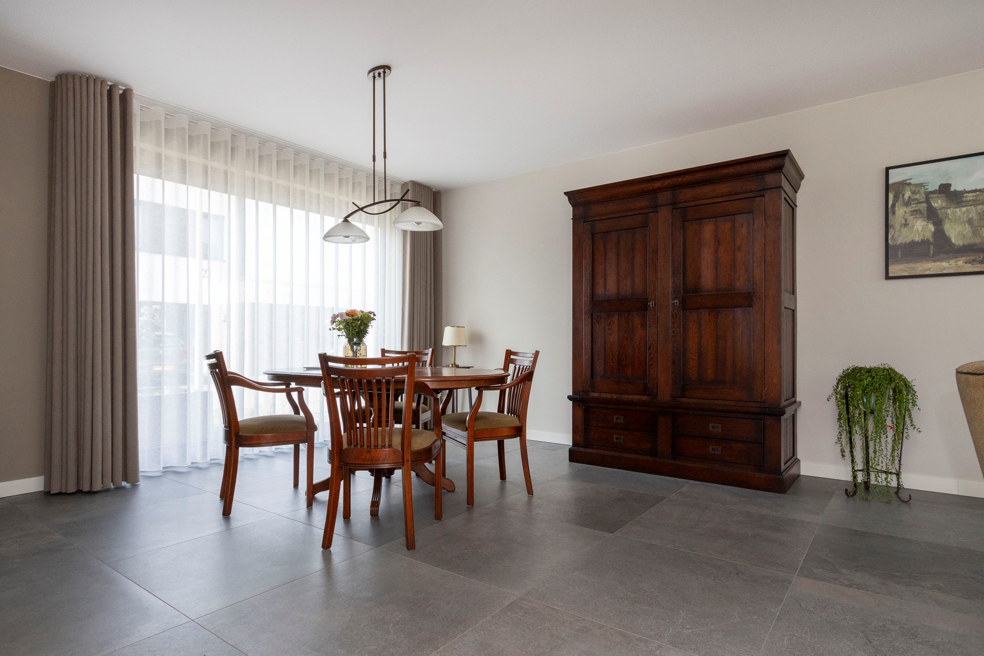 - Inpandige garage met elektrische sectionaalpoort en vaste kast met schuifdeuren