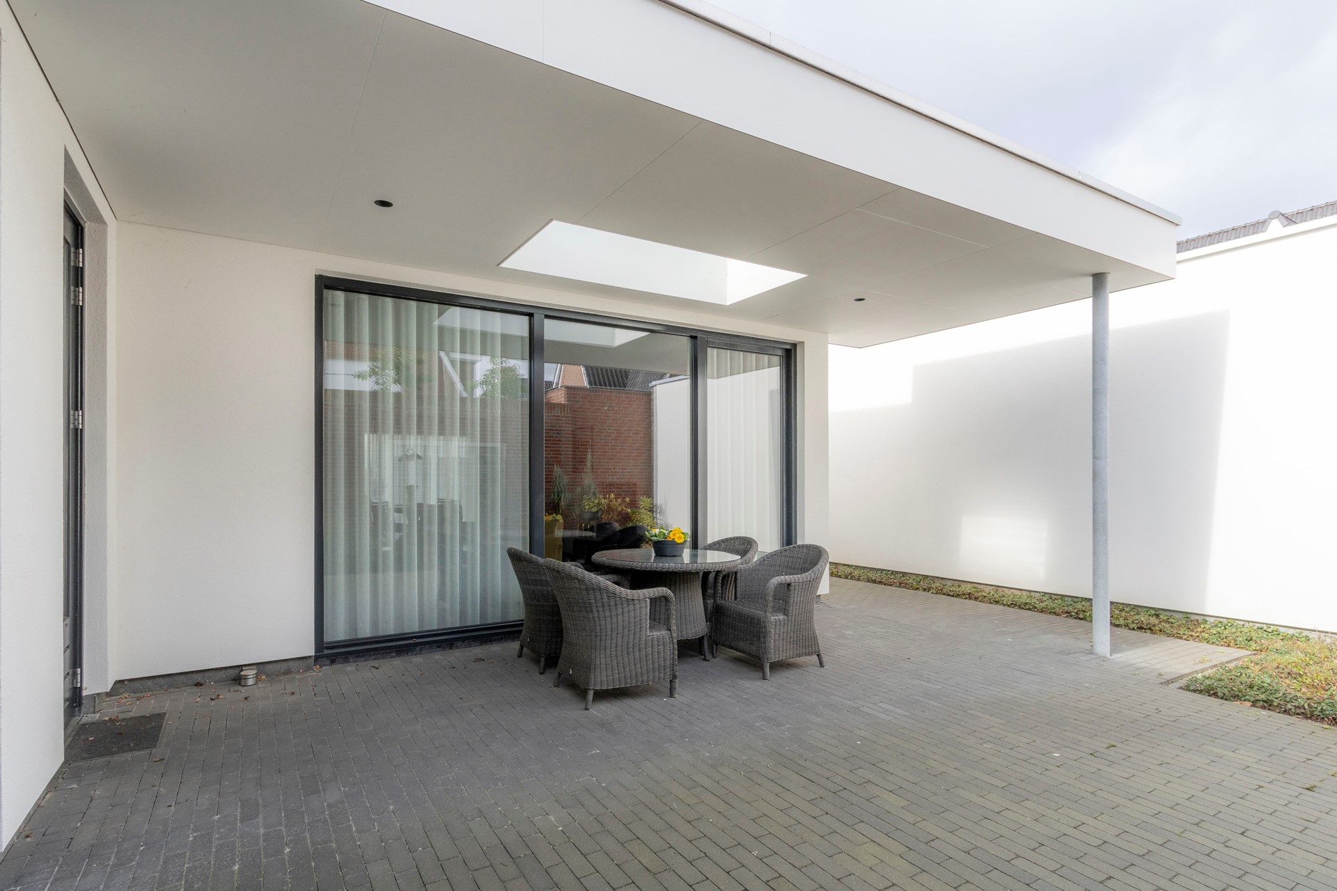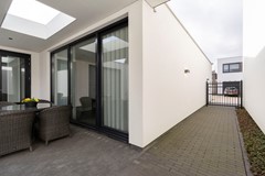 - Terras met afwatering, overkapping met lichtkoepel en inbouwspots