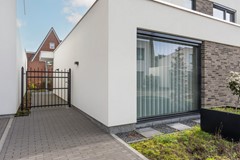 De woning beschikt over een fraai aangelegd terras met afwatering en een overkapping voorzien van een lichtkoepel en inbouwspots. Een heerlijke plek om het hele jaar door van de tuin te genieten. De praktische achterom zorgt voor optimale toegankelijkheid.