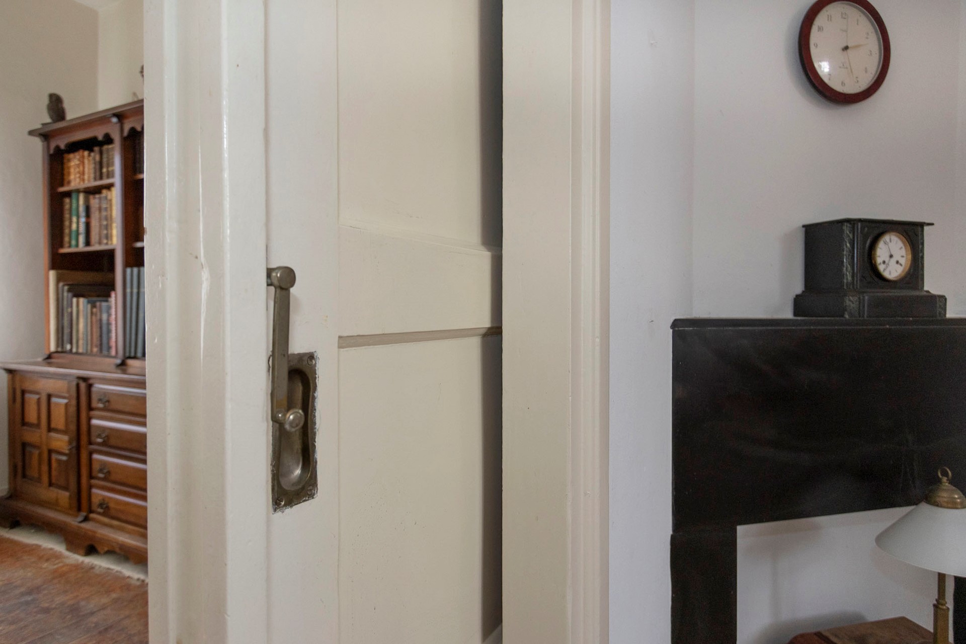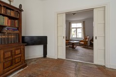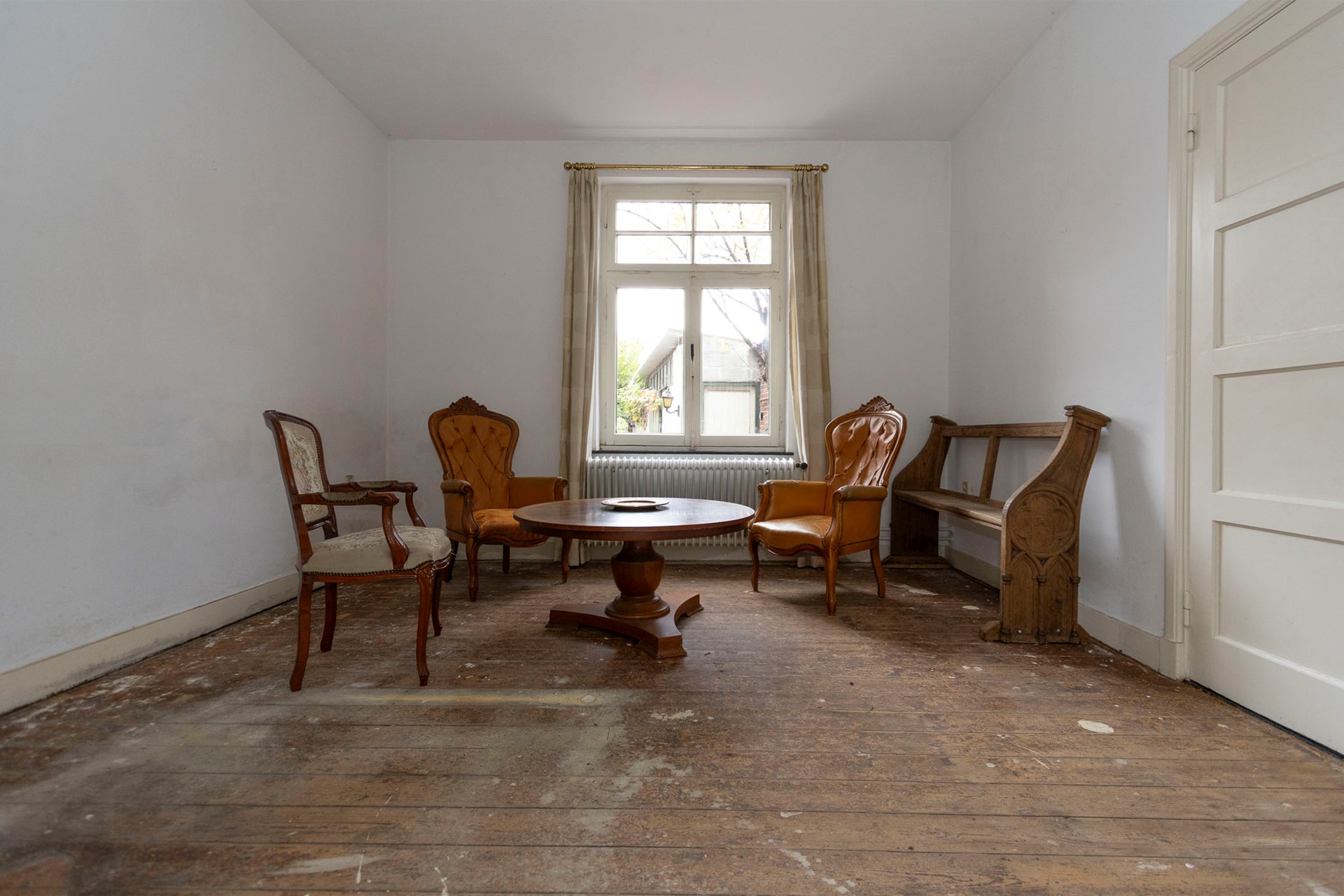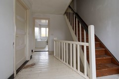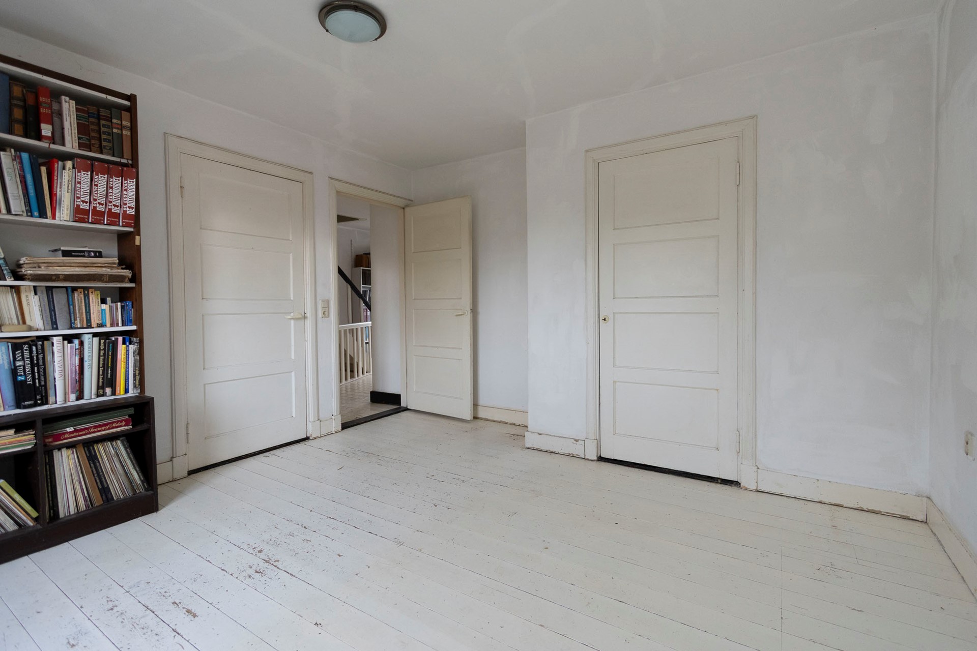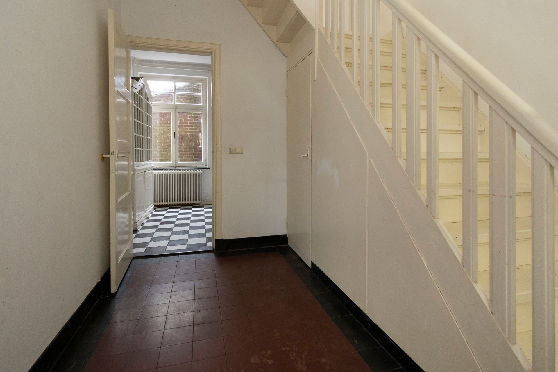 Bij binnenkomst valt direct het glas-in-loodraam bij de entree op, een sfeervol detail dat herinnert aan het bouwjaar van de woning. De hal biedt toegang tot de woonkamer en suite, waar de originele indeling nog intact is. De voorkamer kijkt uit over de straat, terwijl de achterkamer zicht biedt op de diepe tuin. De ruimtes zijn licht en ruim, met volop mogelijkheden om te moderniseren en te herindelen.