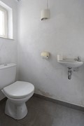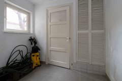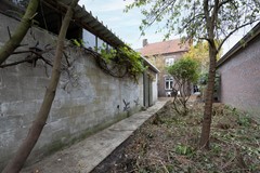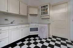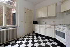 De keuken is ruim van formaat en beschikt momenteel over een hoek opstelling met 4-pits gasfornuis, spoelbak en close-in boiler voor direct warmwater. Achter het oorspronkelijke woongedeelte bevindt zich een praktische bijkeuken, ideaal als wasruimte, berging of als uitbreiding van de keuken. Hier is ook toegang tot een apart toilet met fontein en de achtertuin.